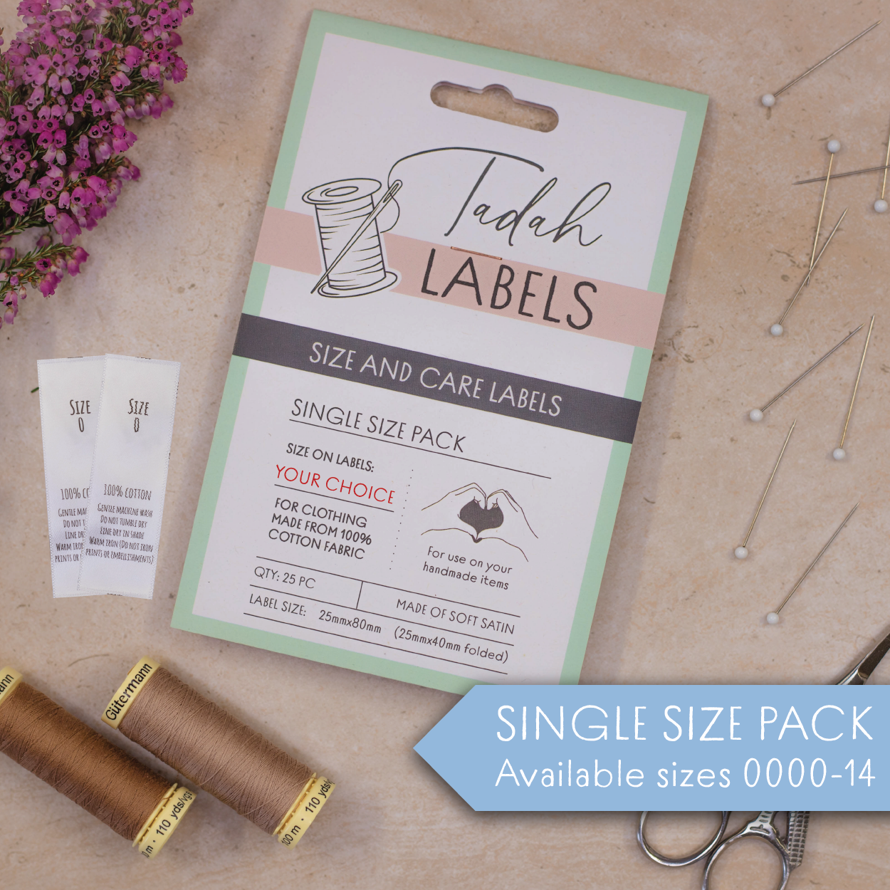 Size & Care Labels - 25 Pack of SINGLE SIZE Care Labels