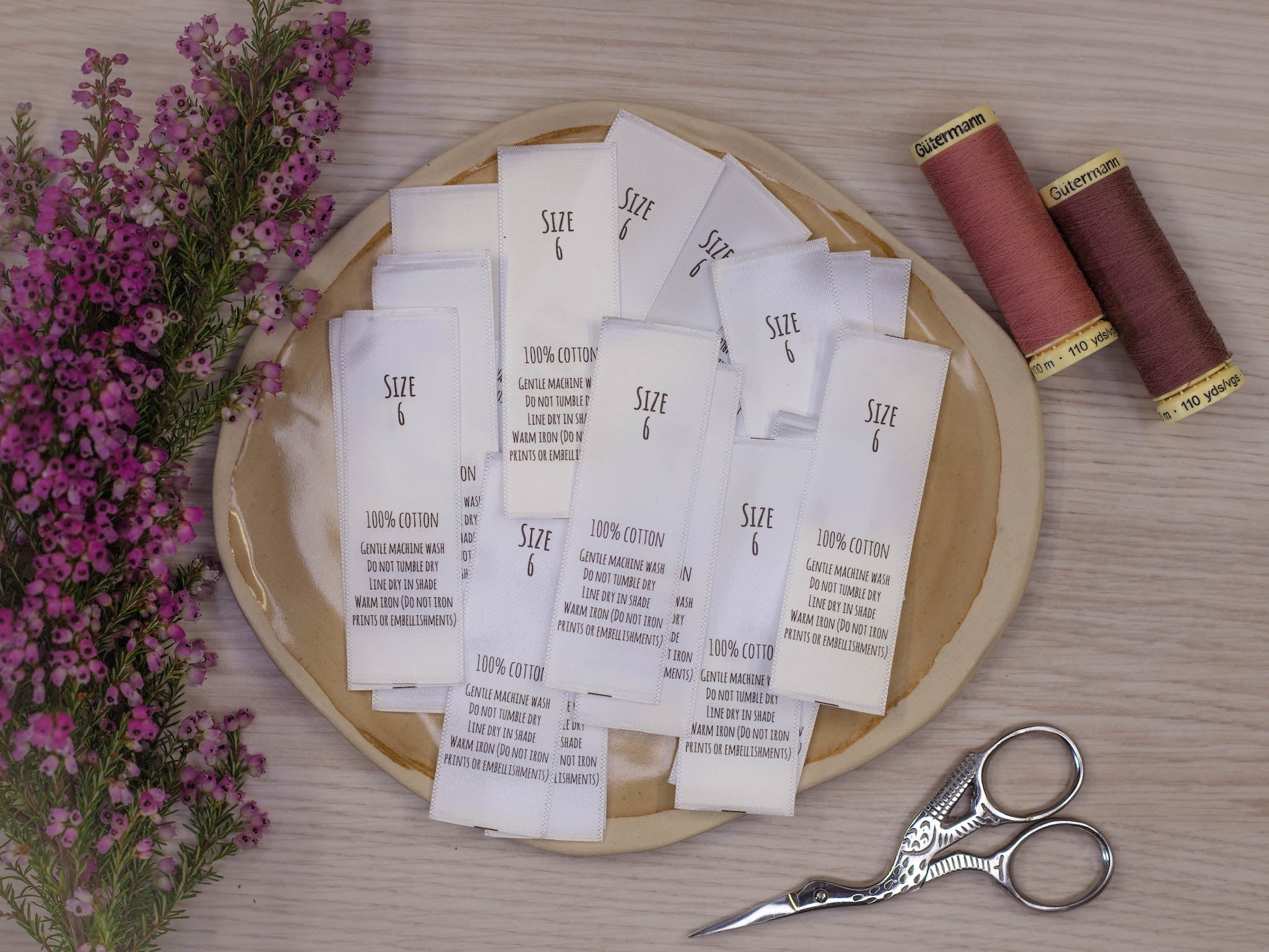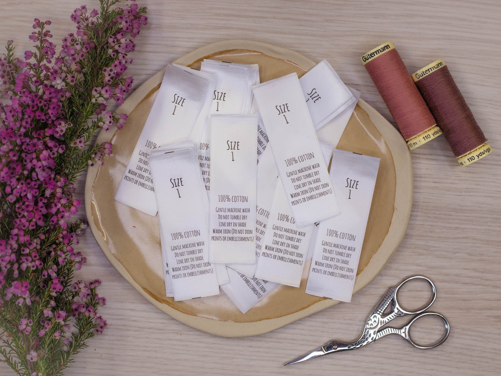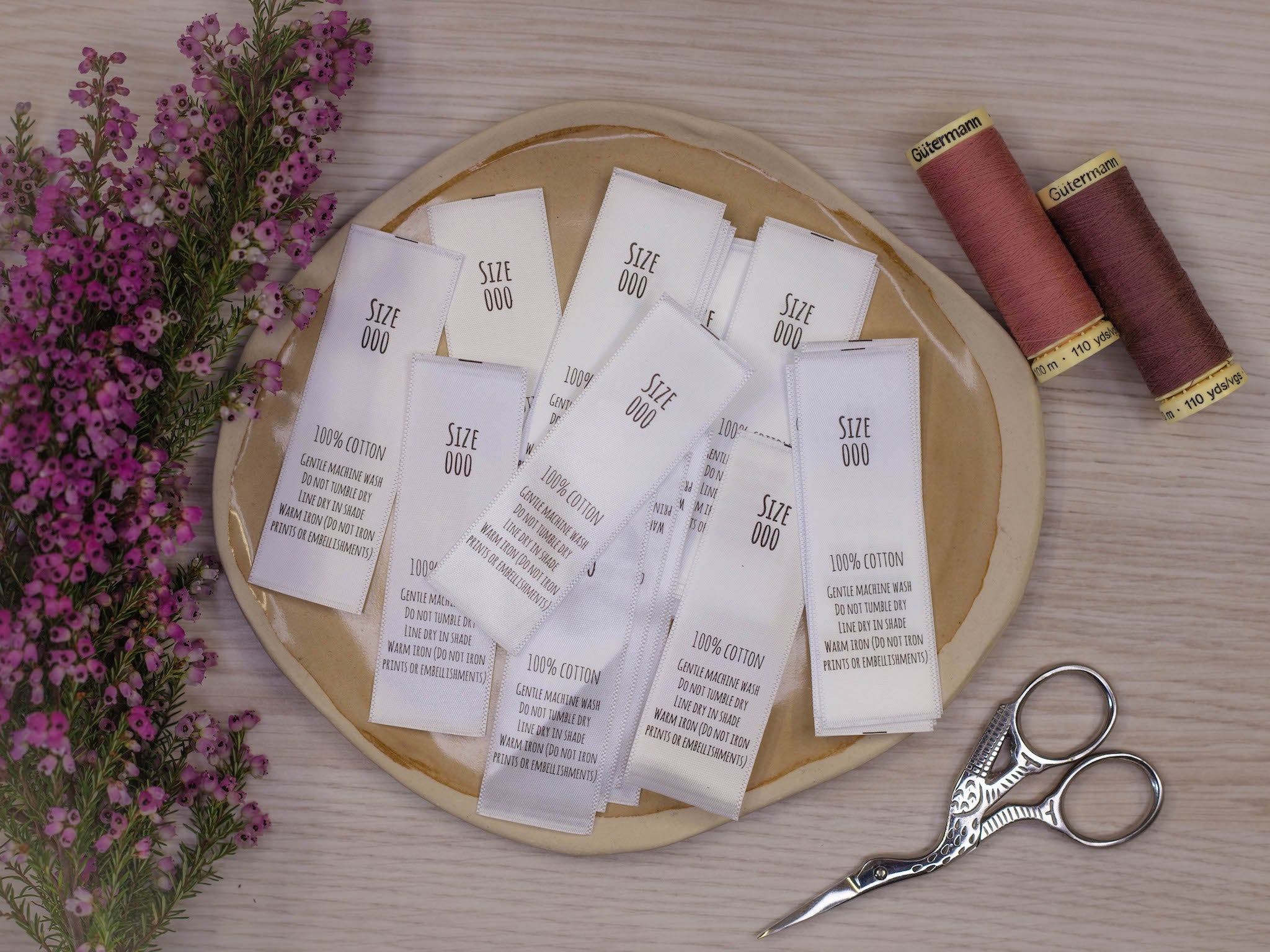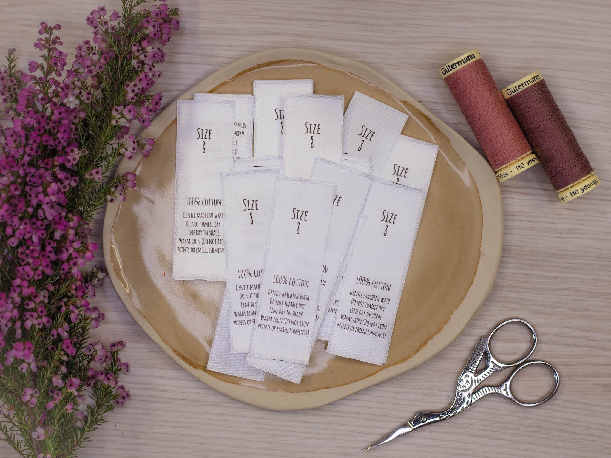 Labels measure 25mmx80mm (25mmx40mm when folded) and are pre cut and ready to sew in!
