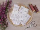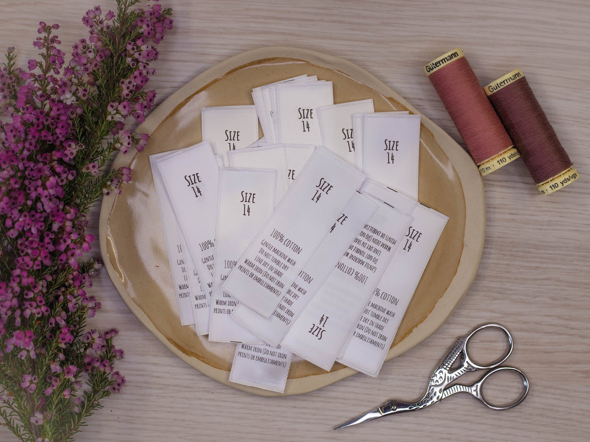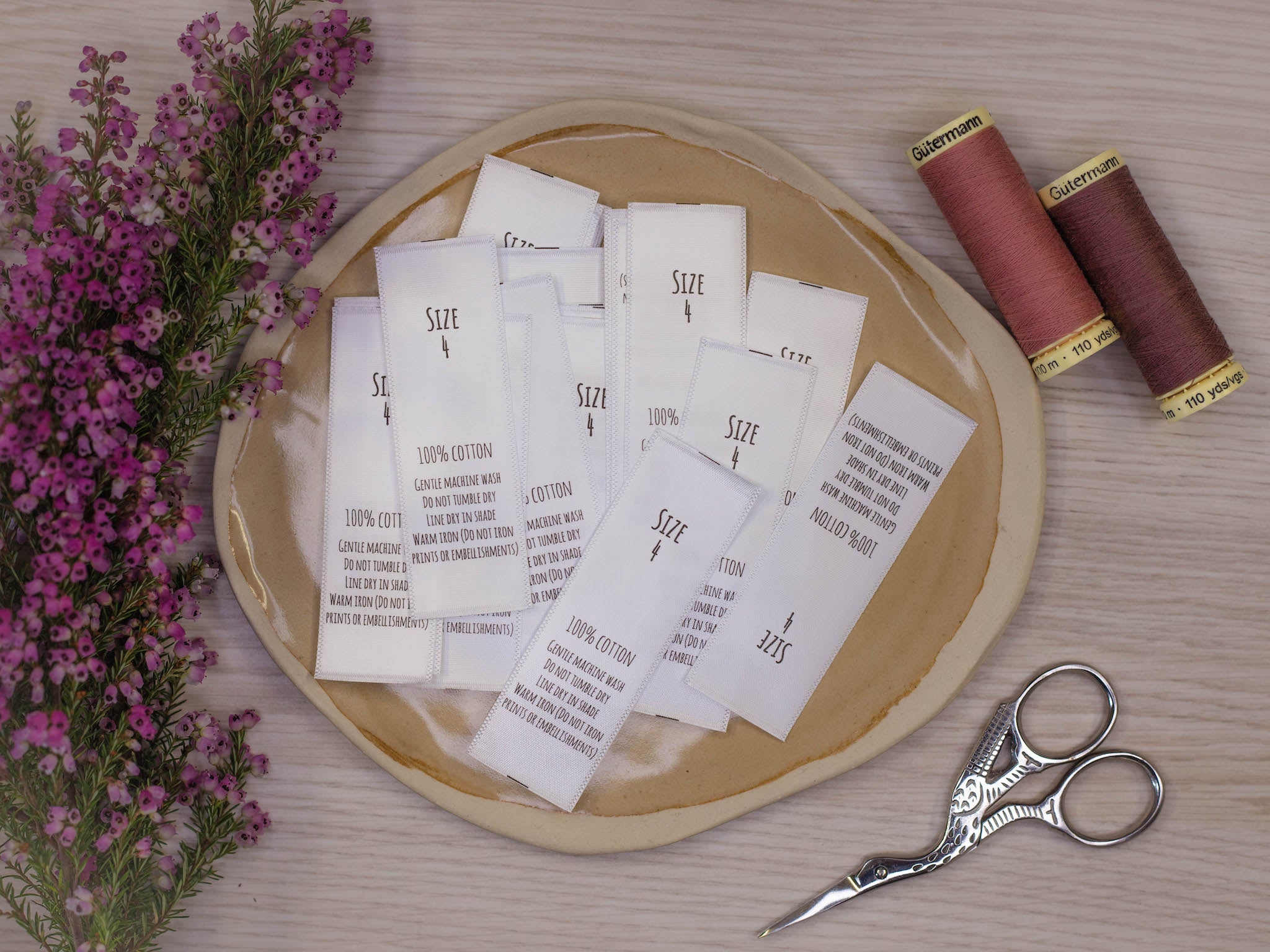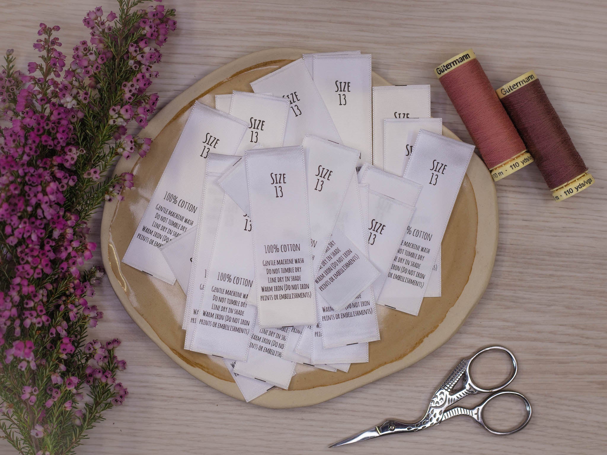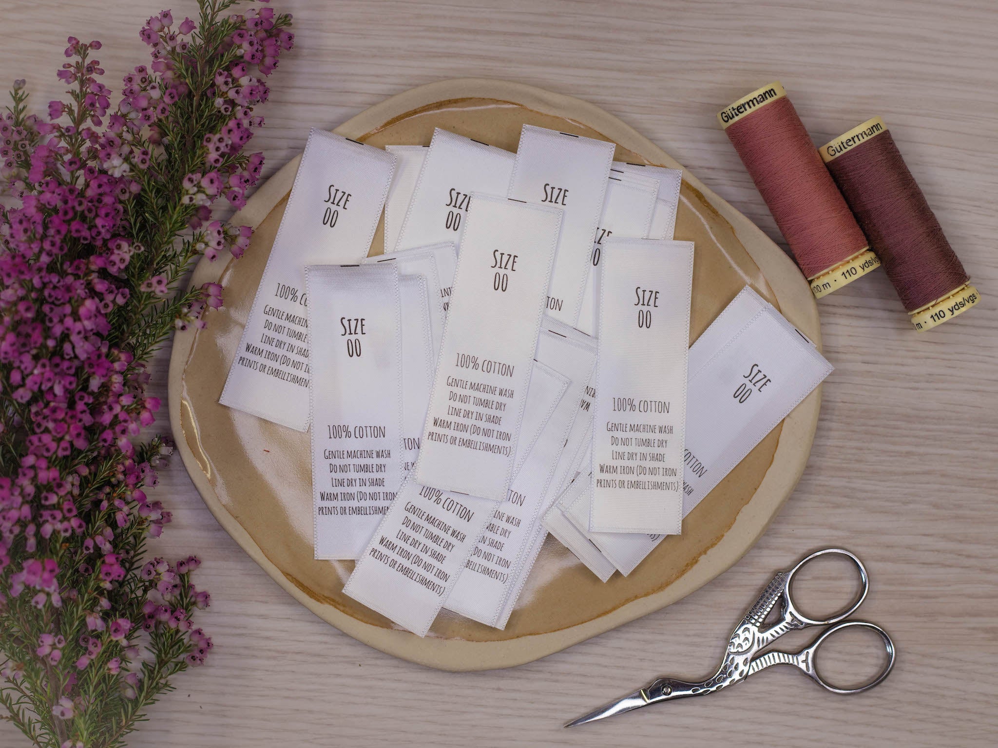 Labels measure 25mmx80mm (25mmx40mm when folded) and are pre cut and ready to sew in!