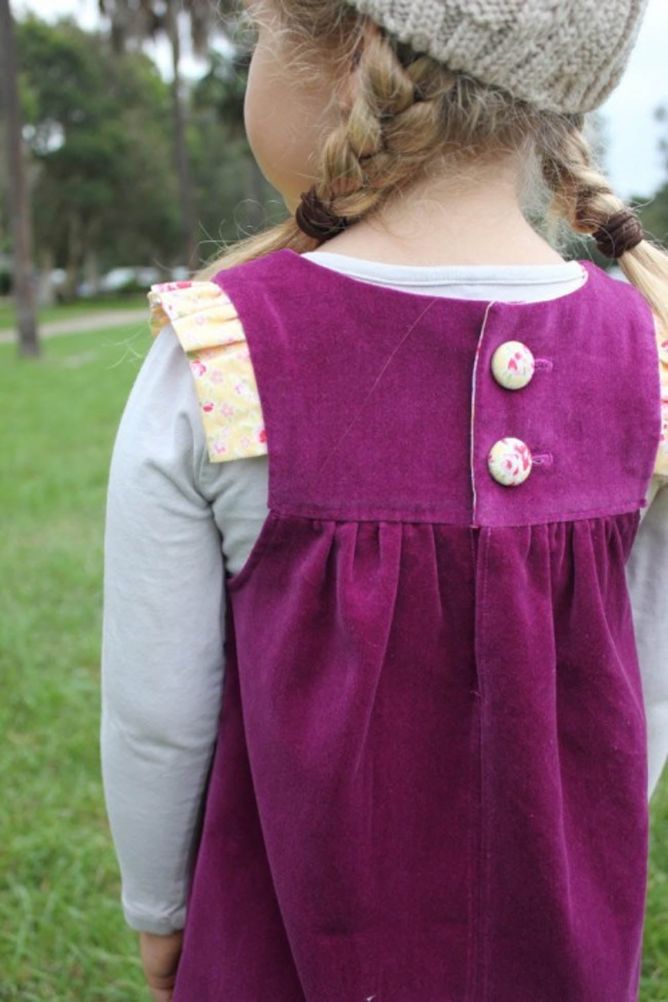 This multiple-size pattern fits girls from size 0000 (newborn) to 10 and features colour coding for ease of cutting. It is suitable for advanced beginner sewers and can be made in any light to medium weight woven fabrics - cotton, seersucker, denim, linen, corduroy or velveteen.