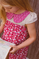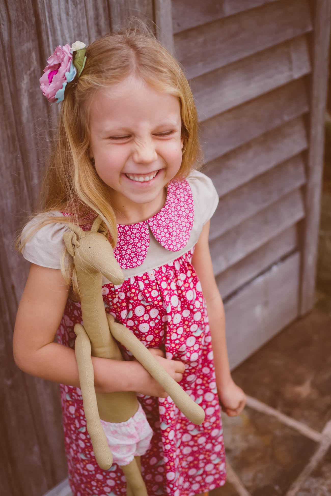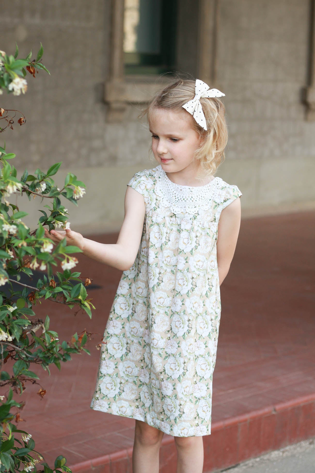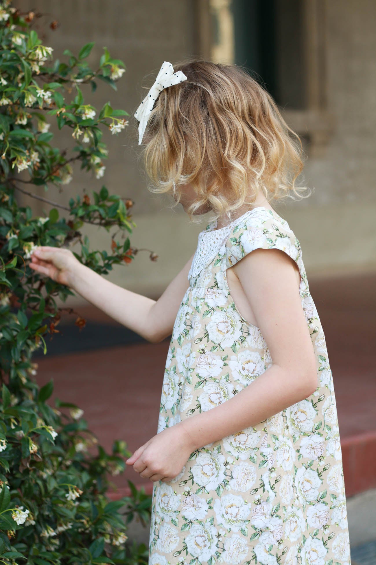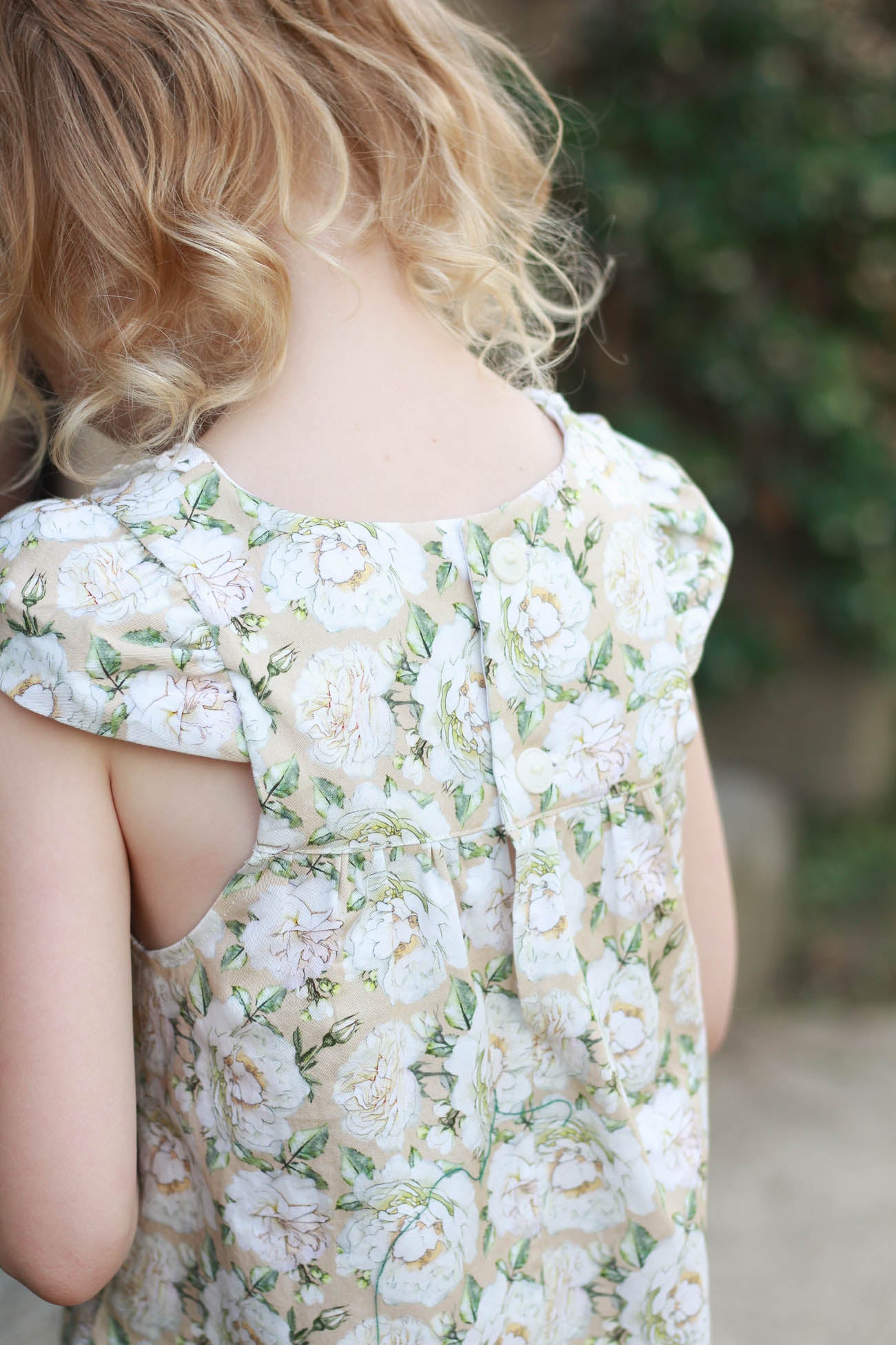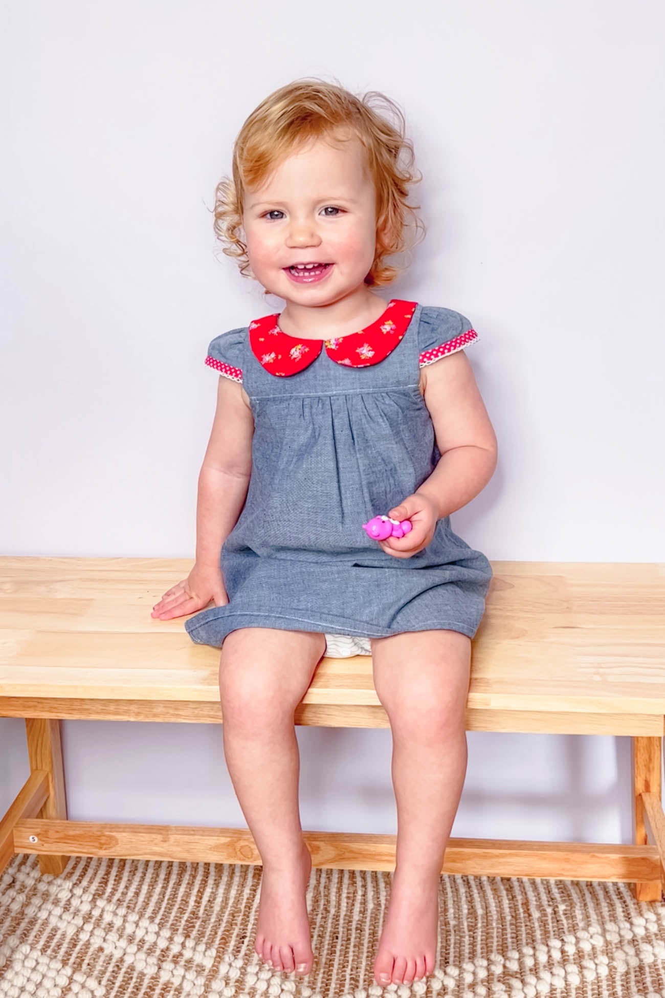 Not only does this pattern include cutting lines for both the dress and top version, but like all Tadah Patterns it also packed with options. The pattern can be made with either sweet cap sleeves, ruffle sleeves or a plain bodice. You can choose between two different collars to add to your dress or top. There is also an optional waist tie (with loops to keep it from falling down) which you can add to your dress.