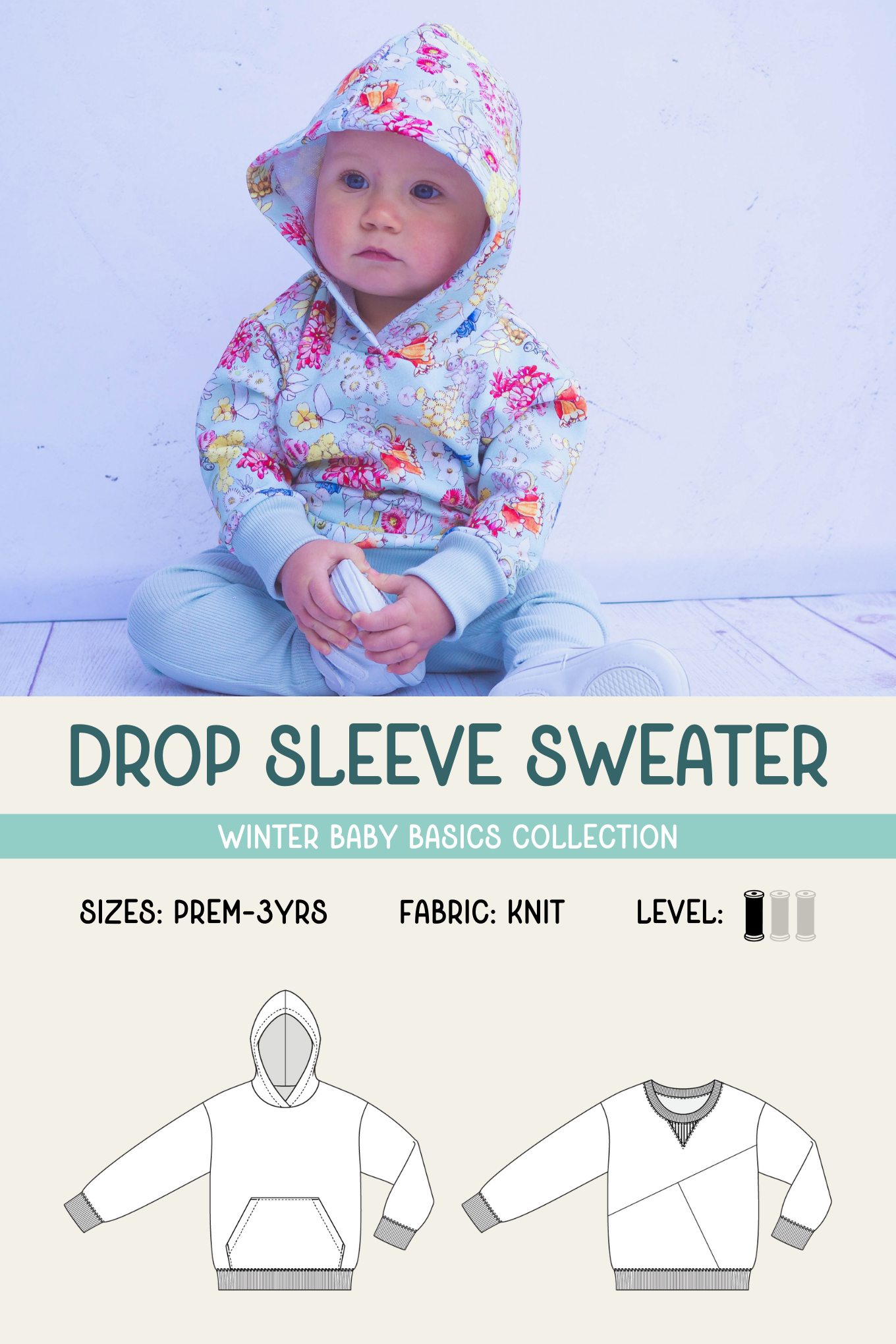 If your littlie likes to keep their hands toasty, add the optional kangaroo pocket to the front or add a little extra style with the inset on the neckline.