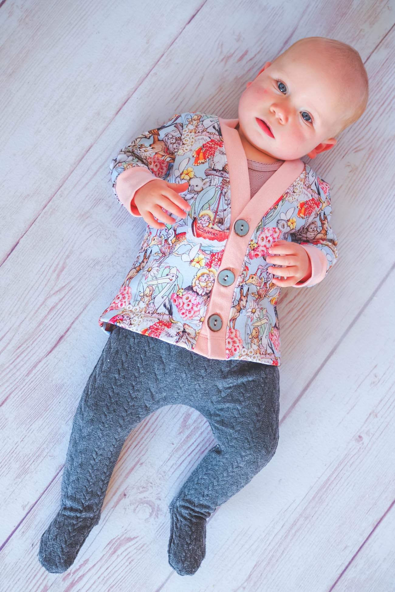Simple to sew and super swift to make, the retro style cardigan comes with the option of short of plain or ribbed finish on the sleeves and bottom hem of the cardigan.