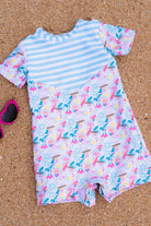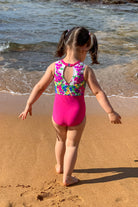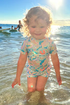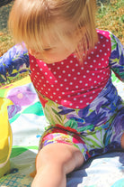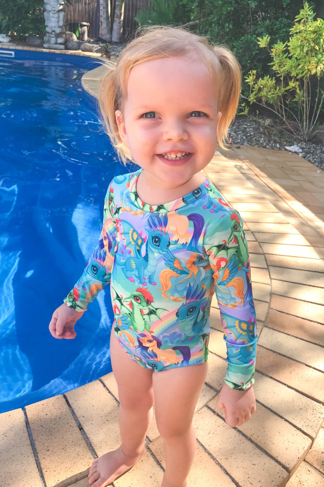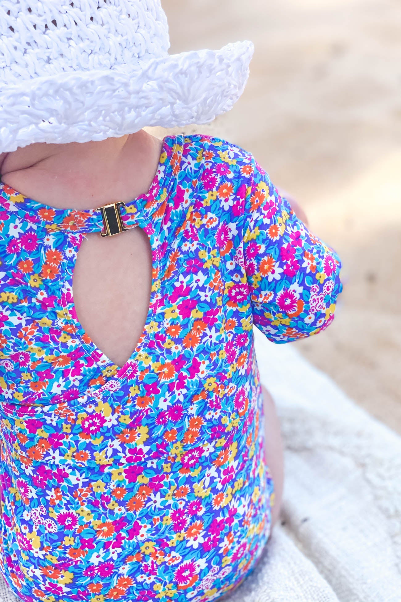 Have Little Miss hit the beach in sun-smart style with the long sleeves, see them soak up the sun in a sleeveless number, or keep in sweet and simple in the short sleeve version.
