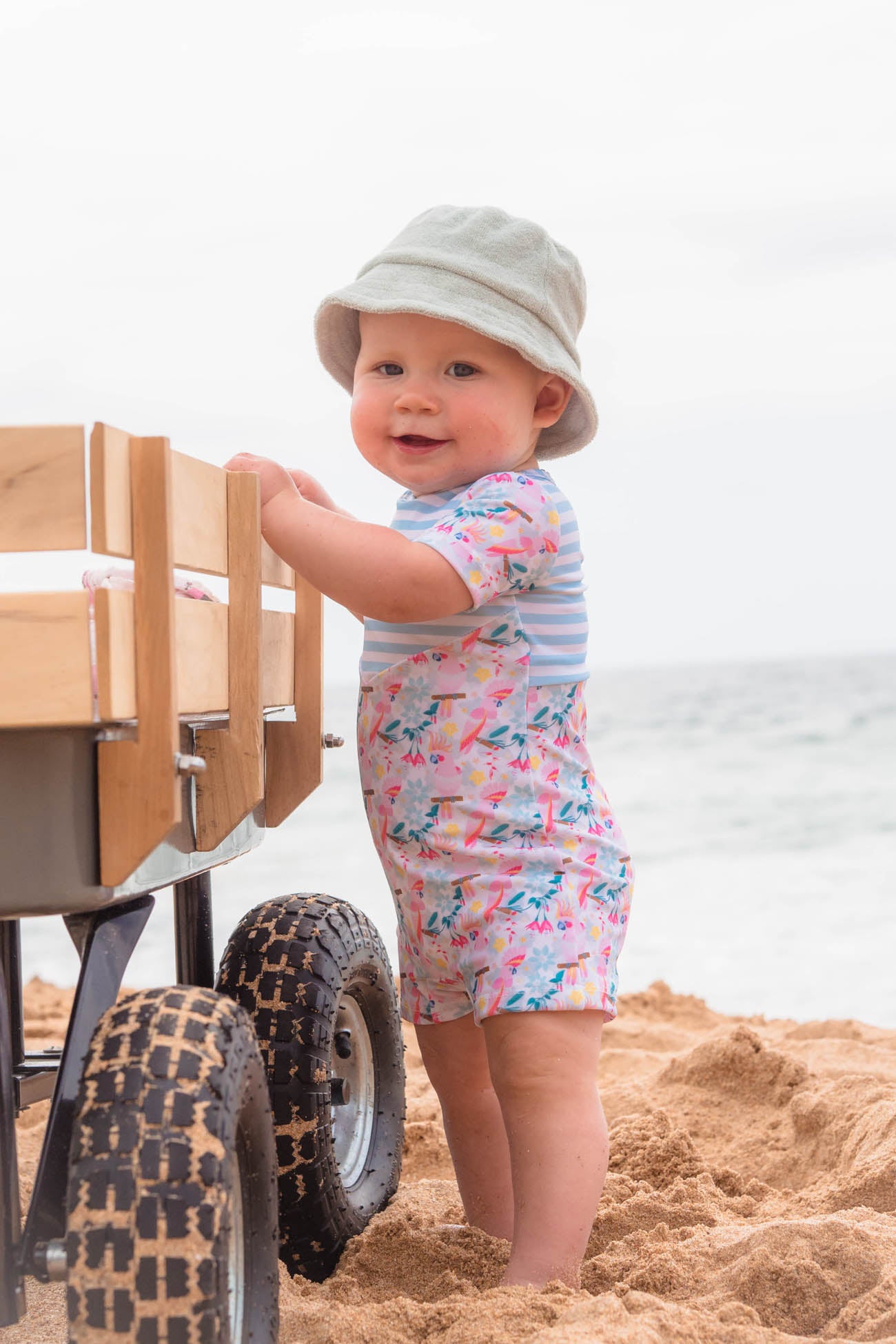 Play in the sand or hit the pool with the ultimate baby swimsuit pattern from Tadah. This adaptable little number is designed with practicality and versatility in mind, featuring a wealth of options to personalise your swimmers.