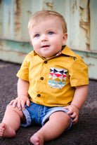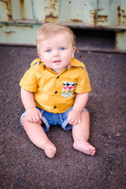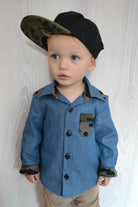 Little sir or little miss will be more than happy to march to the beat of their own drum with this military inspired unisex shirt or romper.