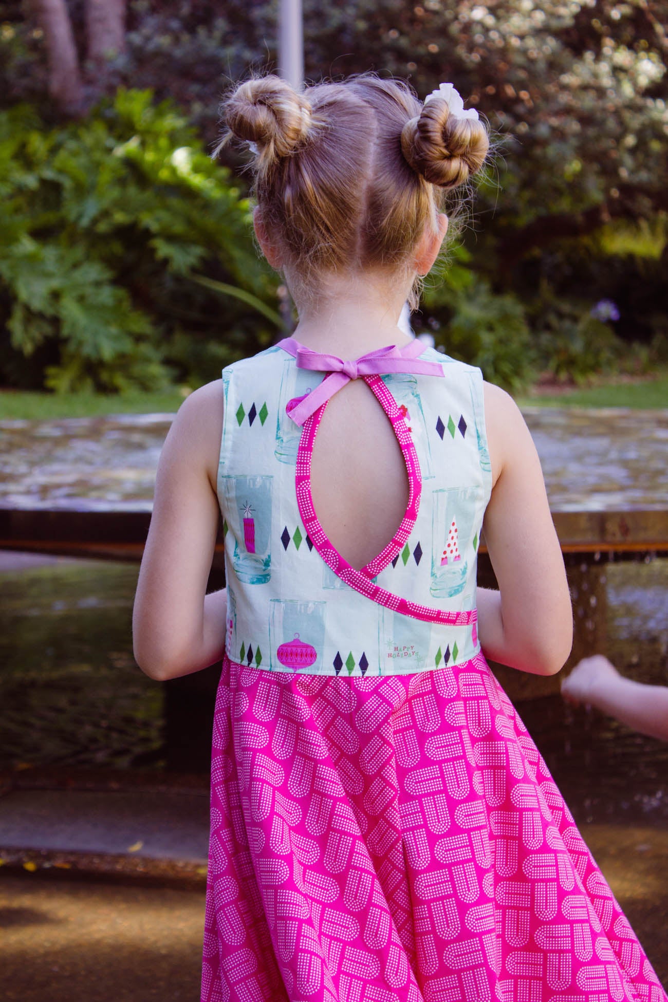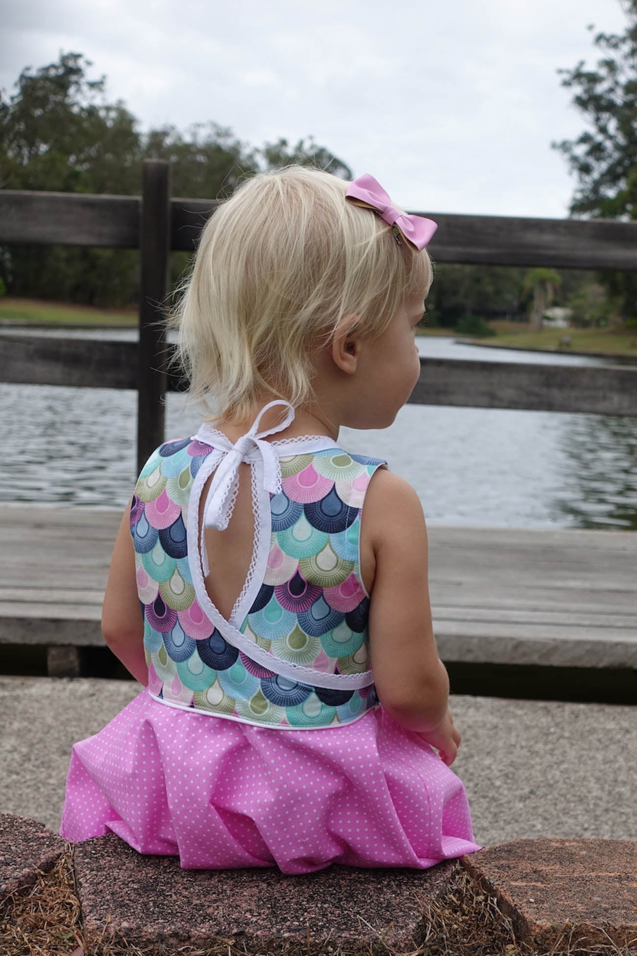 With modesty in mind, the back of this dress has been designed with a small cut out that adds interest and individuality to your outfit. The sweet little bow at the neck is used to fasten the dress, and the absence of buttons/zippers make this dress a surprisingly quick sew!