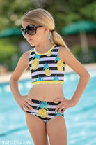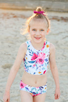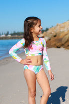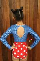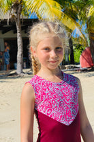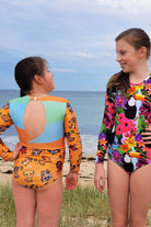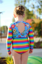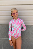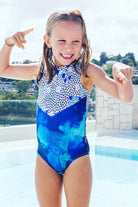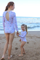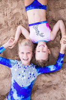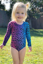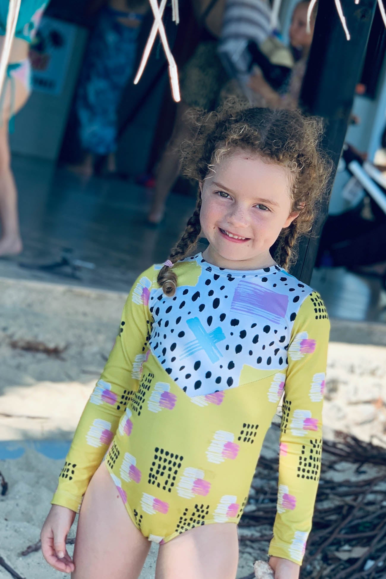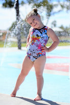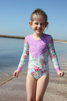 Have Little Miss hit the beach in sun-smart style with a one-piece swimsuit and sleeves, see them soak up the sun in a two-piece sleeveless number, or grace the stage, with a stately leotard-style option.