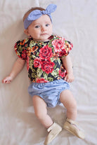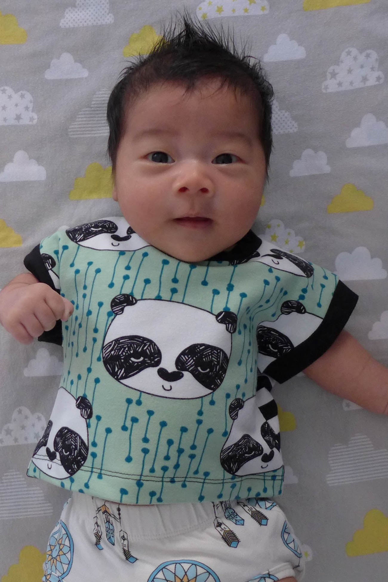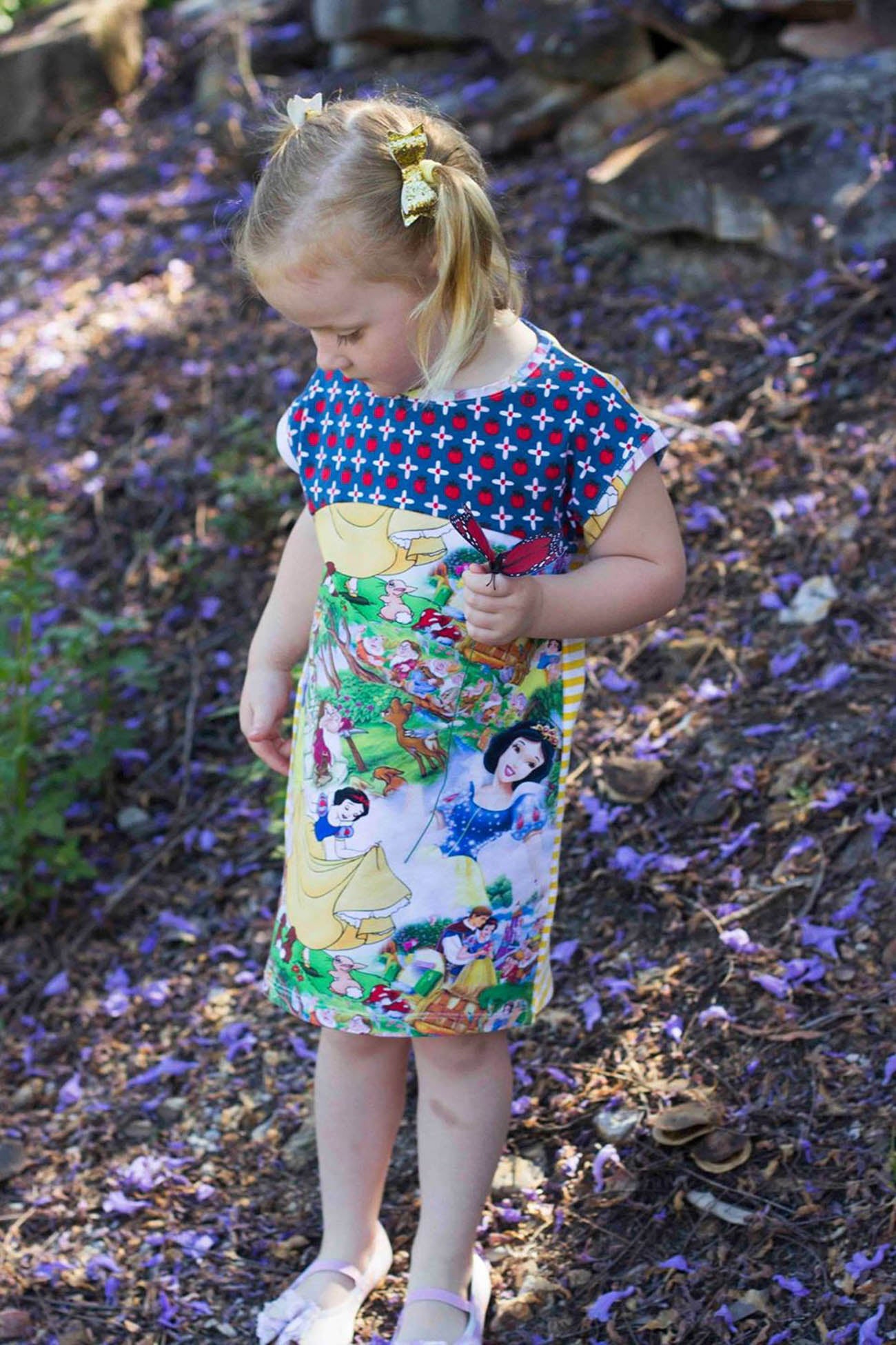 This pattern is suitable for adventurous beginner sewers and comes in a huge size range from 0000 (newborn) up to size 14. It is suitable for medium stretch knit fabrics, with the option to feature a light-medium woven fabric in the front panel.
