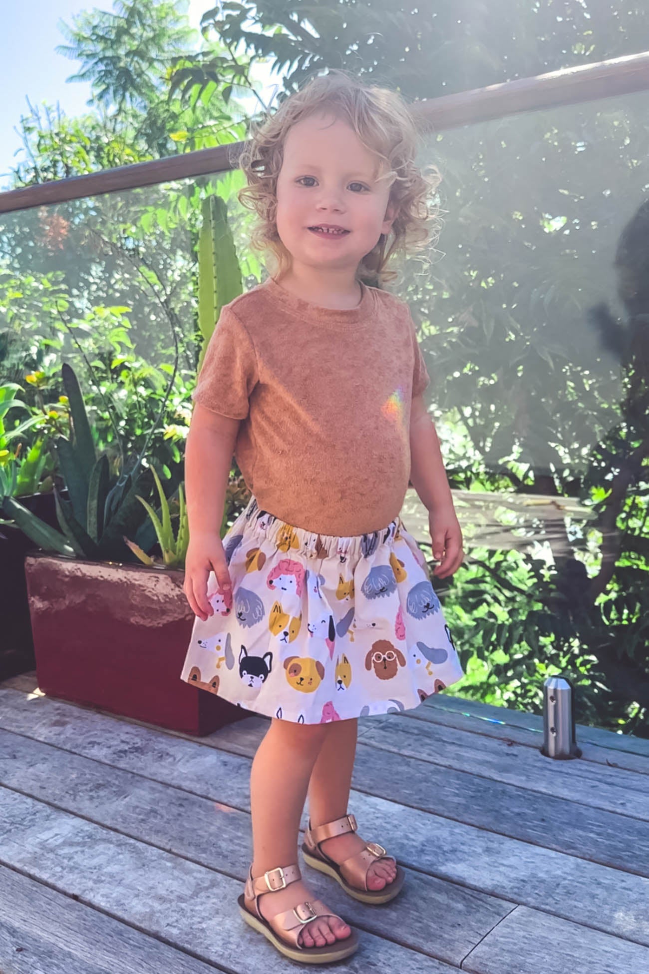 The first-timer skirt is designed specifically with the beginner sewer in mind. Cut from one piece of fabric, and featuring a comfy elastic waistband that is simple to construct, this pattern will be a favourite for both you and your little one!