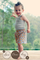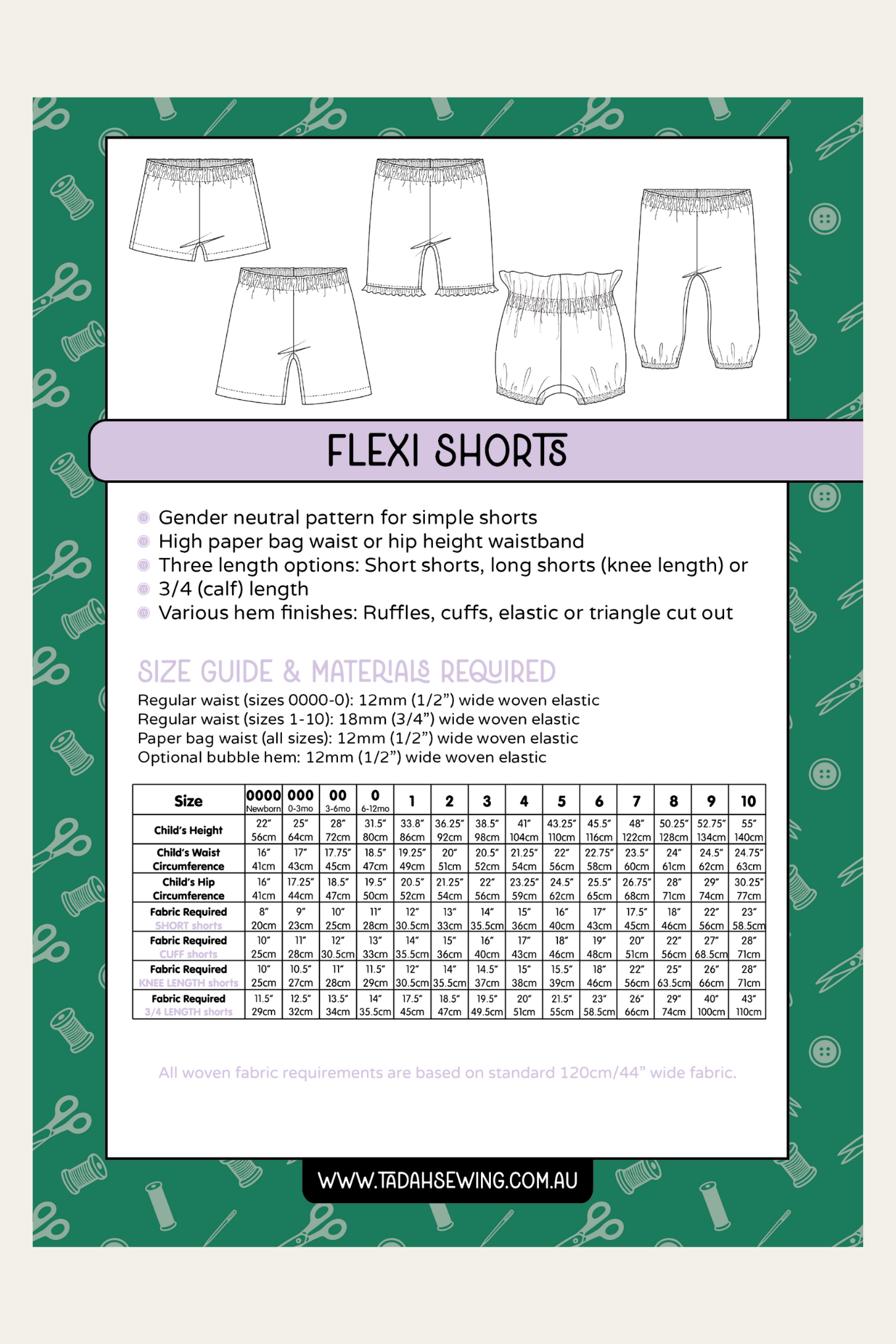Perfect for beginner sewers, the pattern has two waistband options plus short, knee length and 3/4 length variations. There are five different finishes for the hem (basic, cuff, ruffle, triangle cut out and elastic) all of which can be used on ANY length of shorts. You can make the Flexi-Shorts time and again, with a look for every occasion. The options really are endless, meaning you have a single go-to shorts pattern to see children all the way through early childhood.