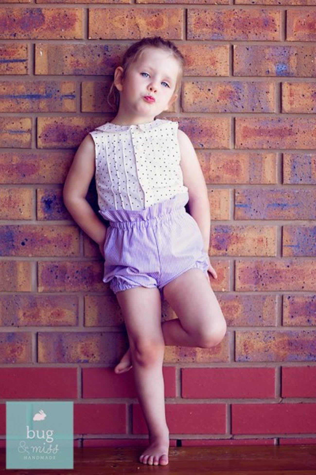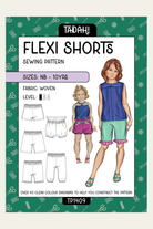This shorts/bloomers pattern is available in sizes 0000(newborn)-10 and is suitable for beginner sewers. The Flexi-Shorts can be made in any light, medium or even heavy weight woven OR knit fabric.