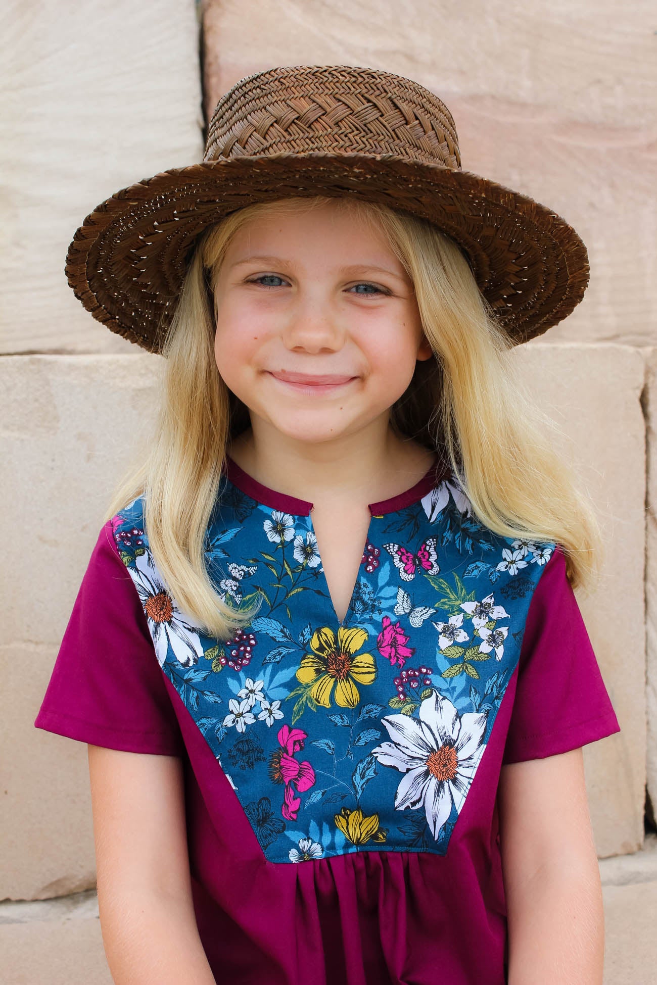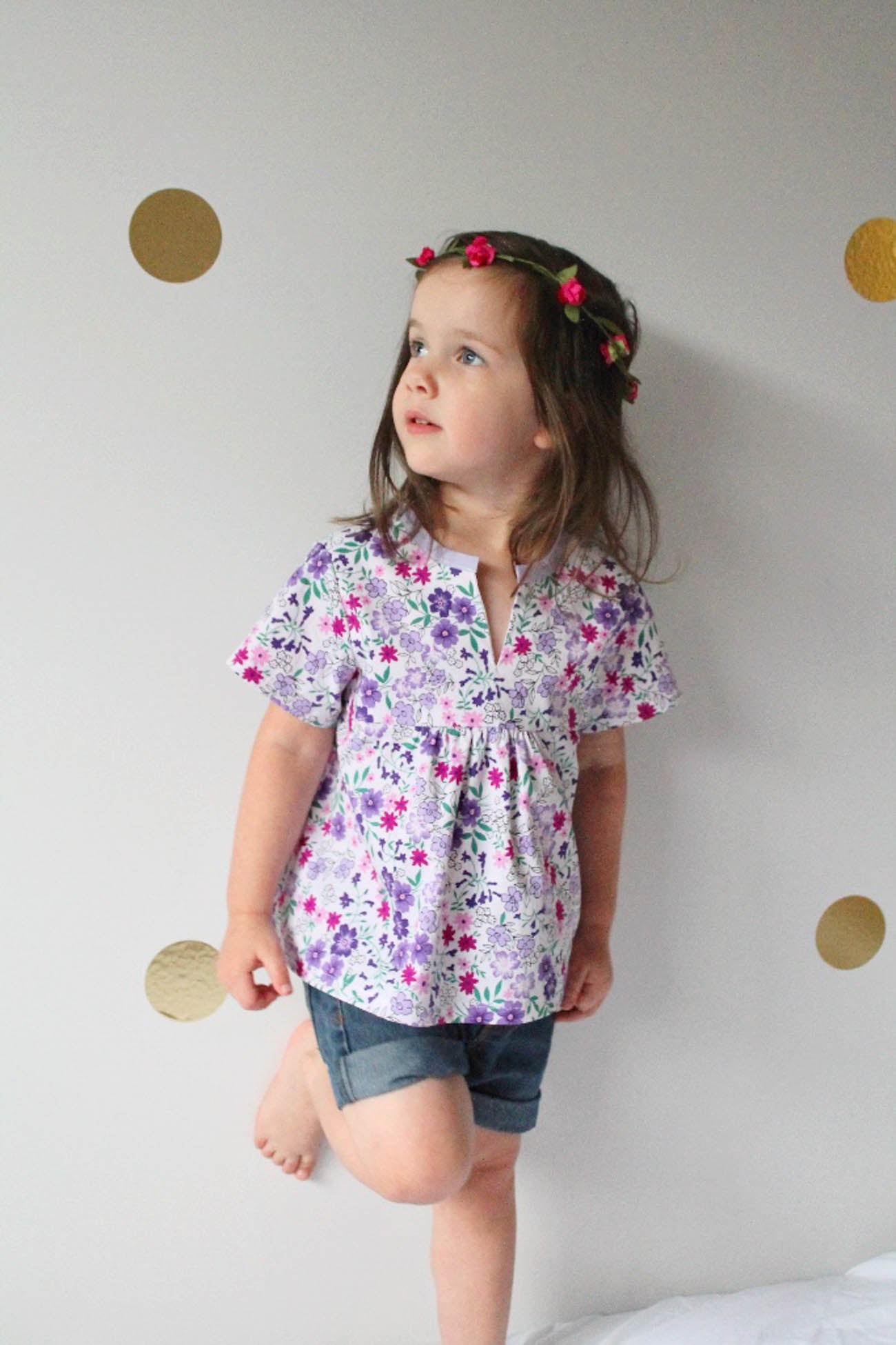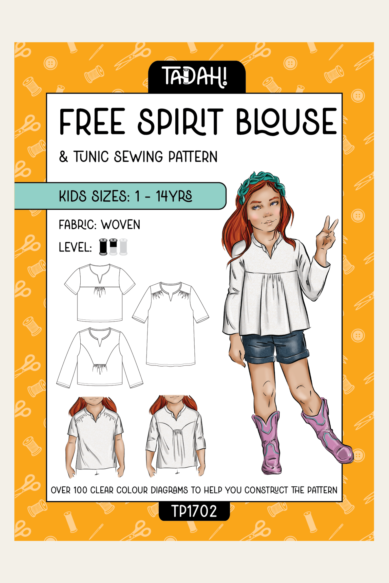 The Free Spirit blouse comes in a multi-size pattern to fit children aged one to 14. It features colour coding pattern pieces for ease of cutting and is best suited to light and medium-weight woven fabrics.
