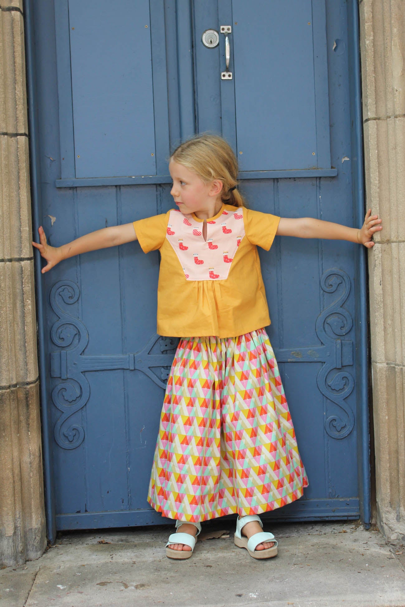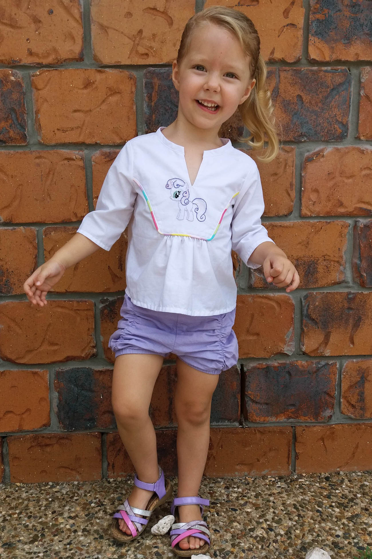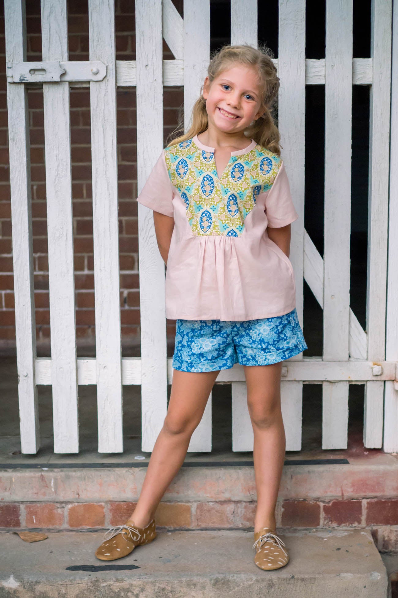 The Free Spirit blouse comes in a multi-size pattern to fit children aged one to 14. It features colour coding pattern pieces for ease of cutting and is best suited to light and medium-weight woven fabrics.
