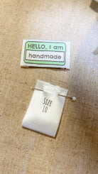 End fold design: Perfect as a feature label on the front of your overalls, hat or bodice. Also looks great stacked with our size and care labels which you can sew on to the lining or facing or your garment.
