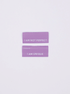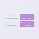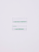 Double sided label - One side says 'I am Unique' and the other side says 'I am not perfect'