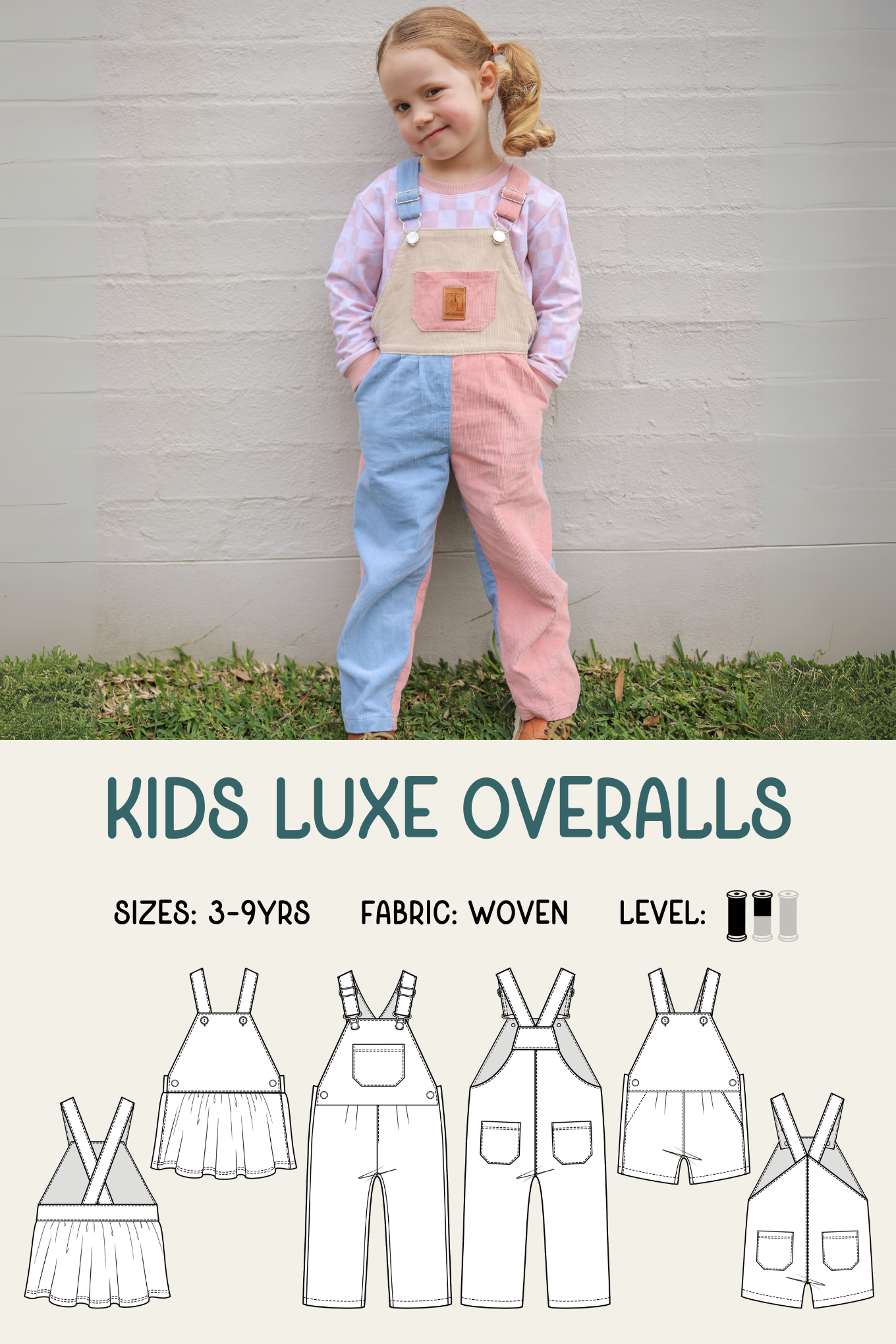Suited to the adventurous beginner sewists and beyond, these overalls are available in three size ranges - Baby (sizes newborn to 3), Kids (sizes 3-9) and Teen (sizes 8-14).