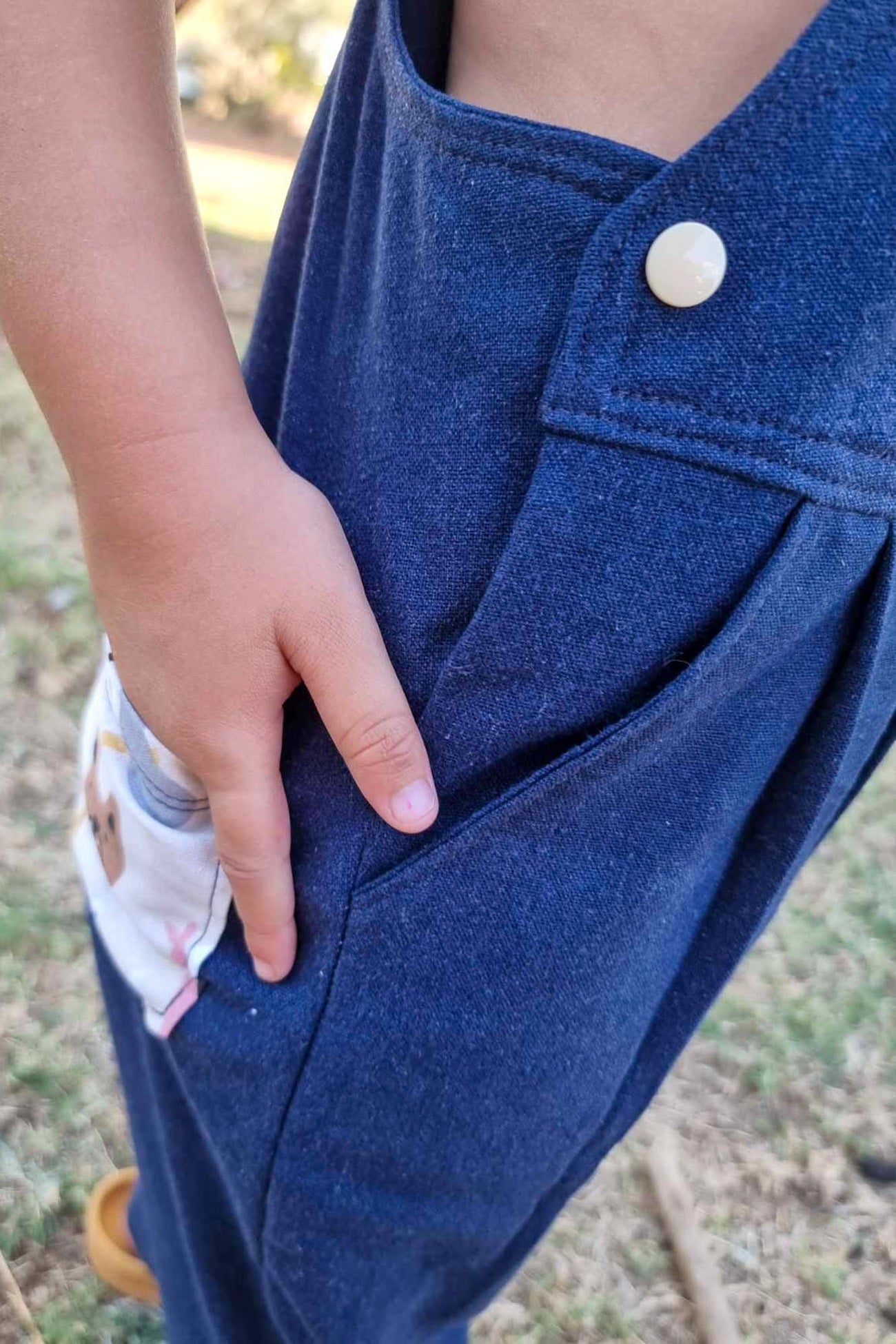 Featuring side openings with your choice of snap or button finishes and straps that can be customized with buttons, snaps, or classic overalls hardware, these overalls will be a favorite in any kid’s wardrobe. Made to work with a variety of mid-heavy weight fabrics, including denim, corduroy, linen, and more, this pattern includes tips for sewing with denim and creating professional-quality overalls.