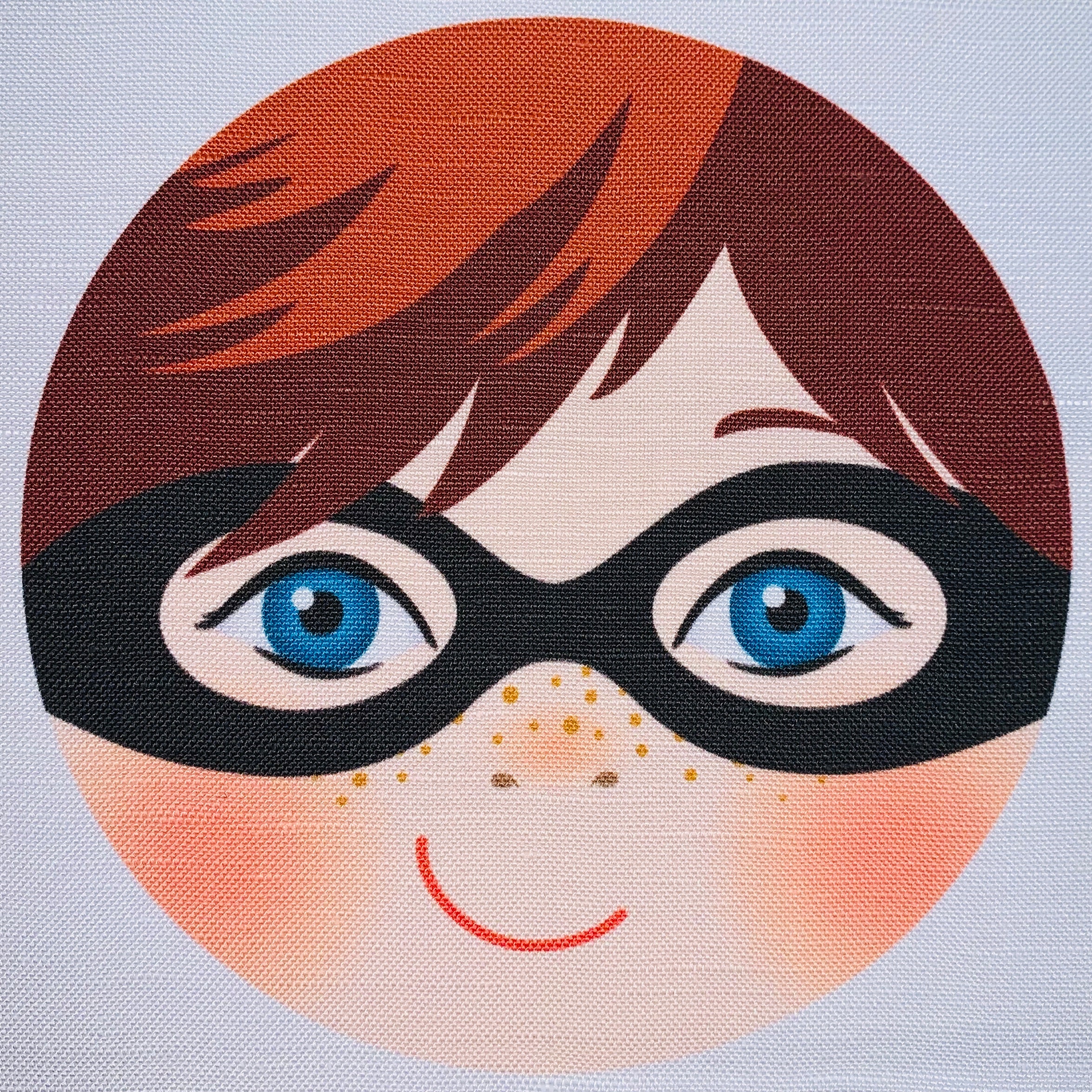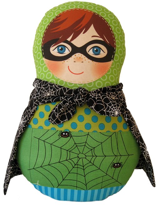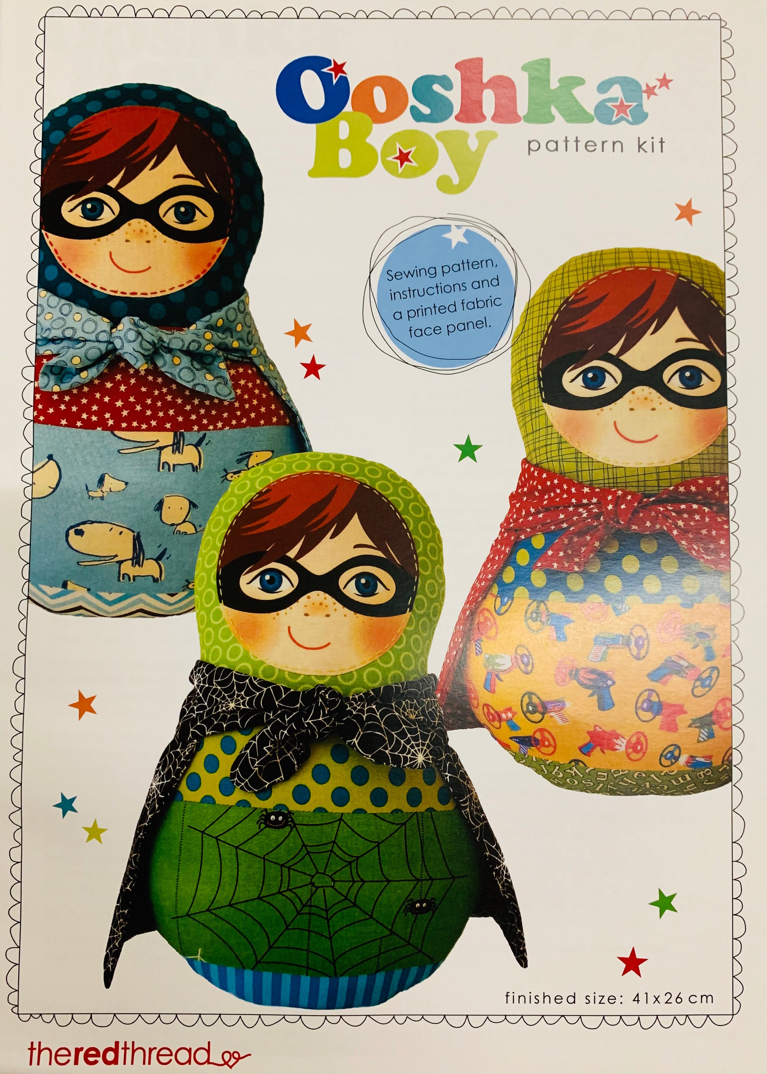 Make your own superhero with this Ooshka Boy pattern kit. The kit contains a sewing pattern and instructions and a face panel printed on linen/cotton blend fabric.