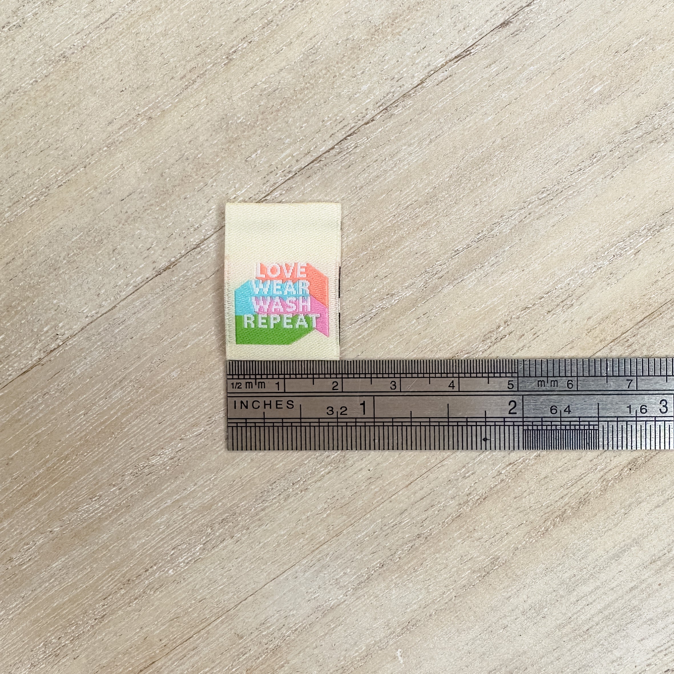 Love Wear Wash Repeat: 20mm x 26mm (when folded) and includes a 6mm seam allowance at the top.