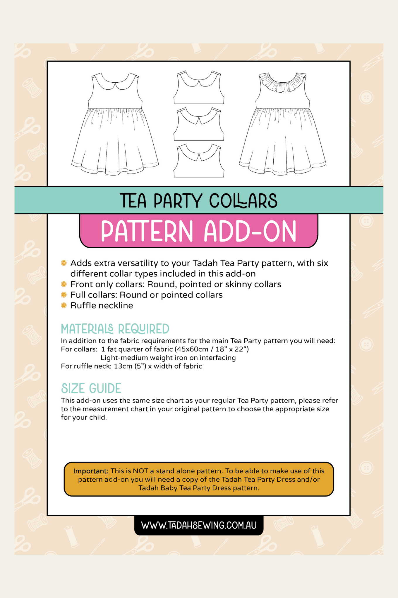 IMPORTANT: This fabulous little add-on is designed to extend the use of your TEA PARTY DRESS pattern OR BABY TEA PARTY pattern. This is not a stand alone pattern. You MUST own one of the above patterns in order to use this add on.