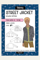 The Street Jacket is available in three pattern sizes of Baby (0000-2), Kids (3-8), and Teens (8-14), and is suited medium to heavy weight fabrics including denim, corduroy, suiting, linen, drill and twill.