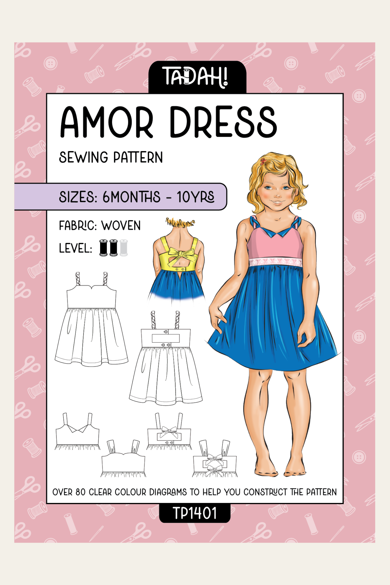 This multiple-size pattern fits girls from size 0 (6-12months) to 10 and features colour coding for ease of cutting. It is suitable for intermediate sewers and can be made in any light to medium weight woven fabrics - cotton, seersucker, lightweight denim or linen.