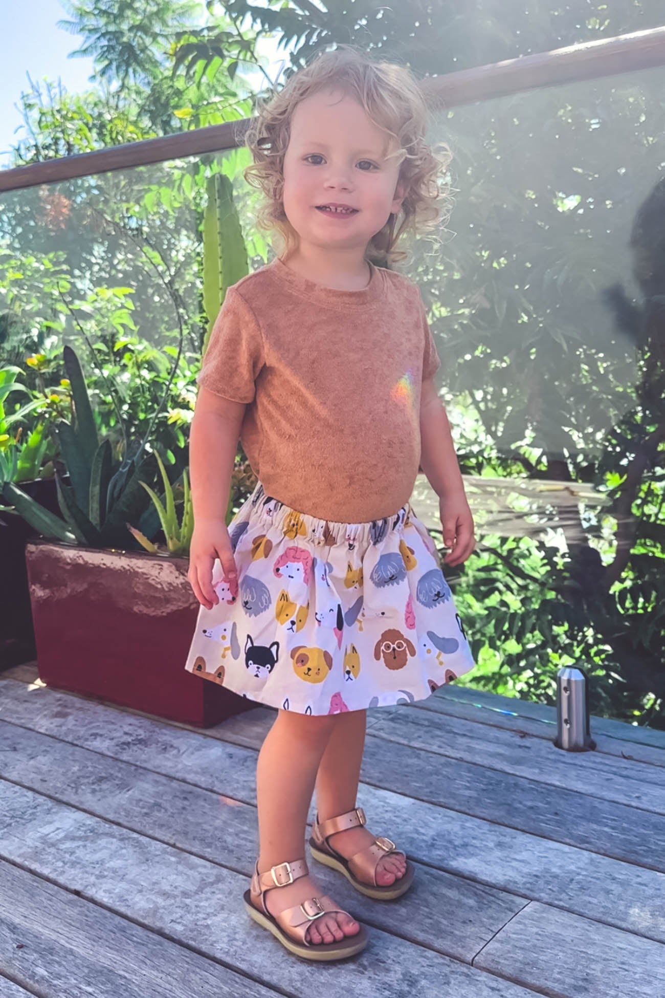 Courtesy of the optional circular skirt, this clever baby basic can be created as a trendy t-shirt, designed as a delightful dress, or perfected as a peplum top, and comes with the options of short or long sleeves, and binding or a band at the neck.