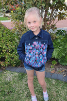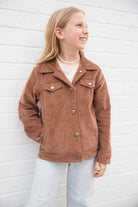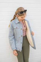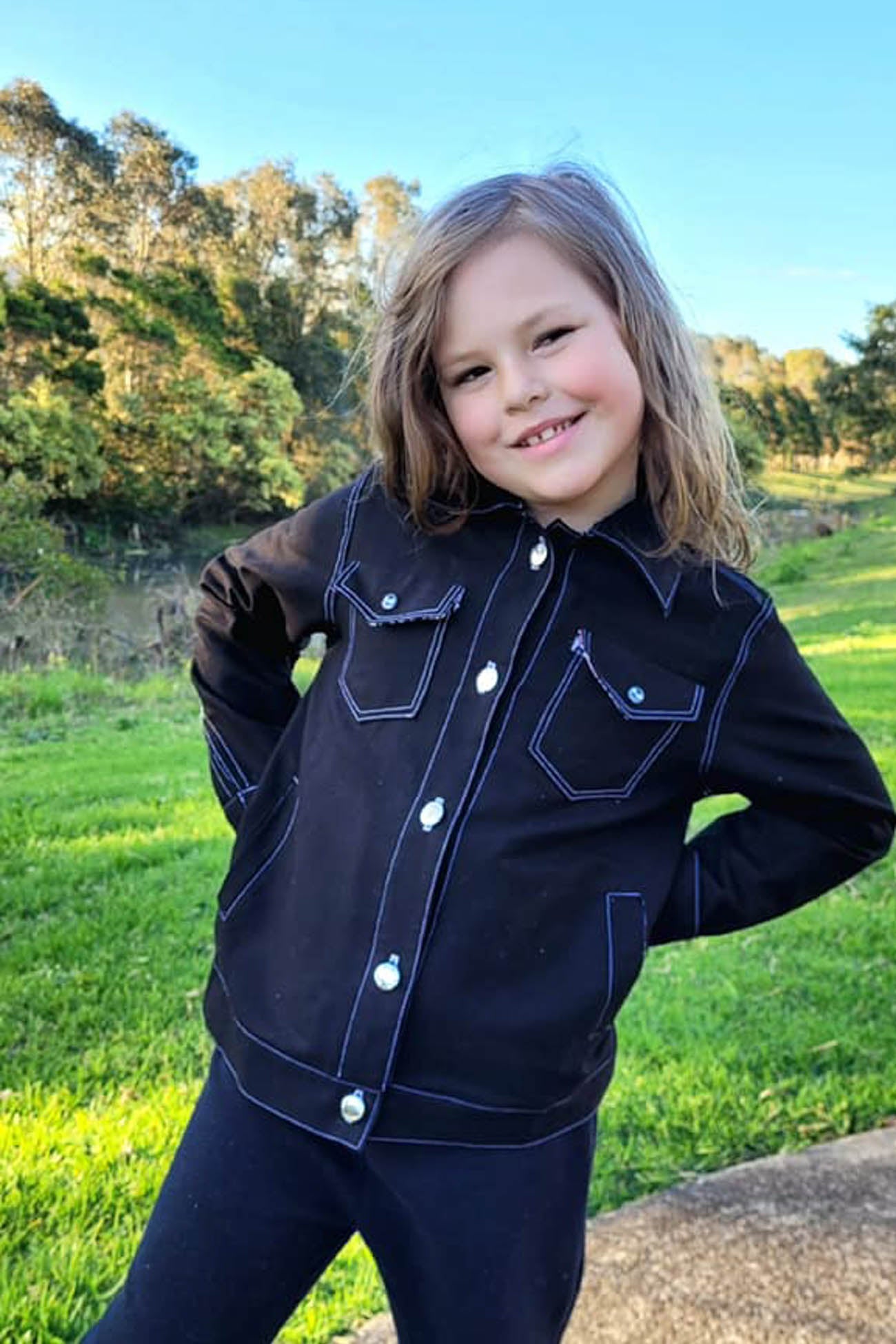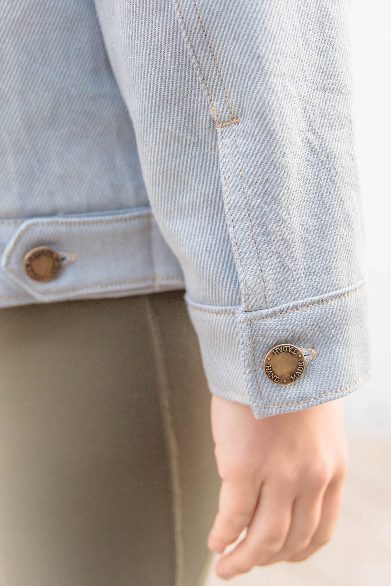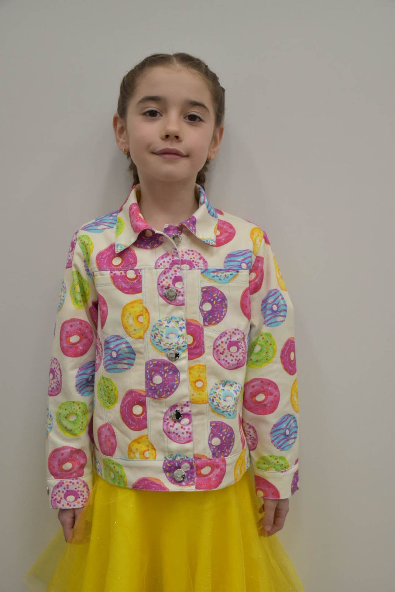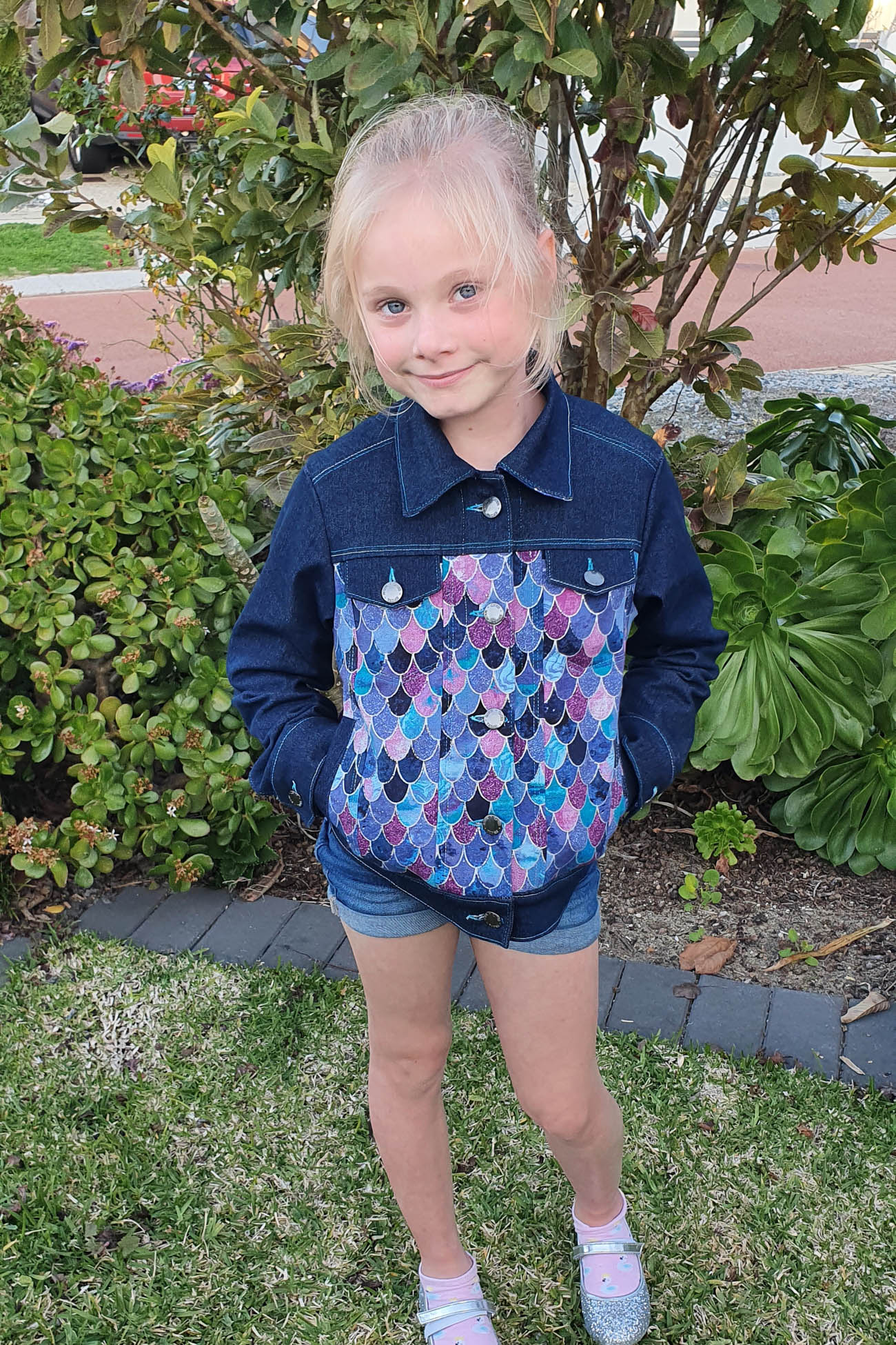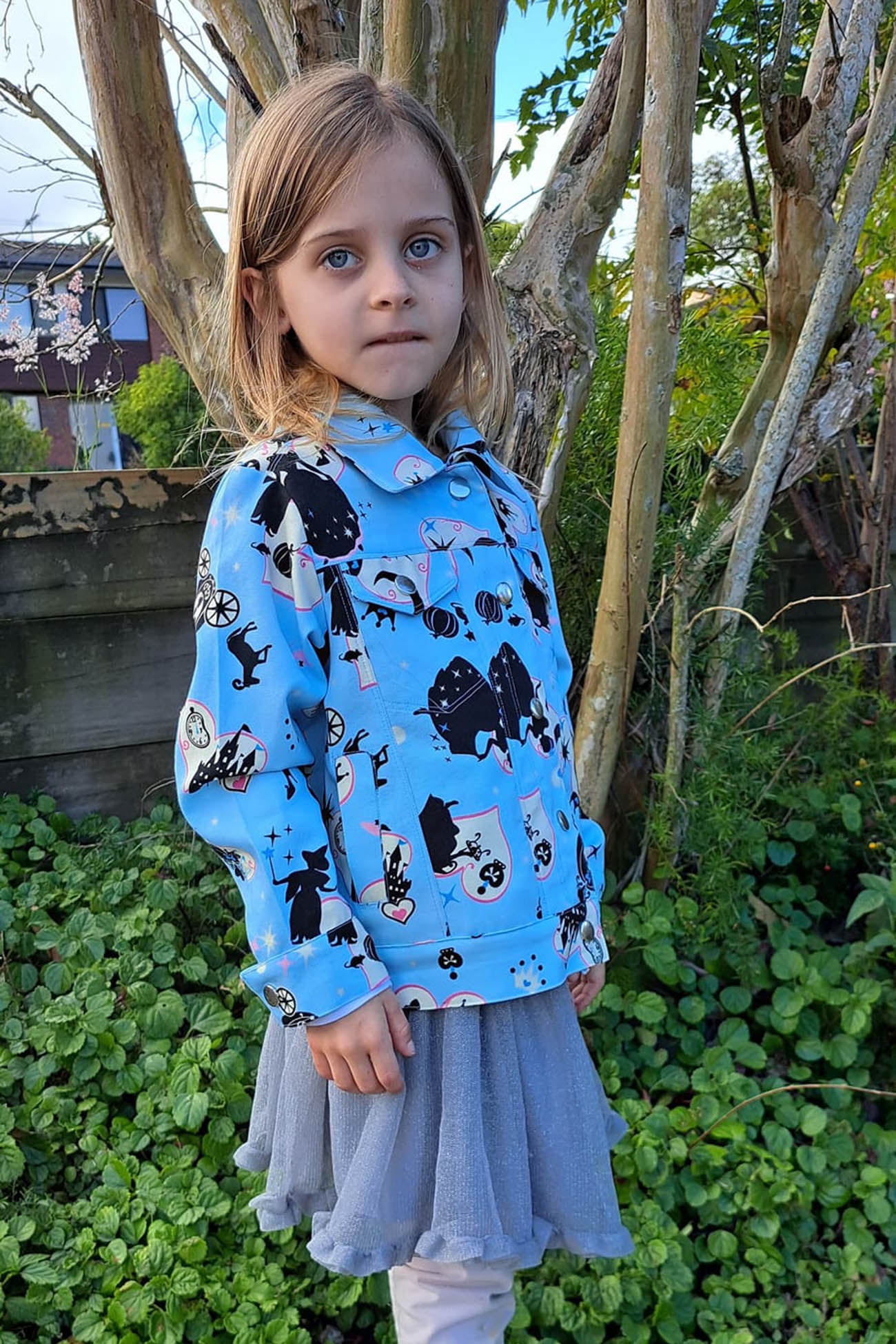 The Street Jacket is available in three pattern sizes of Baby (0000-2), Kids (3-8), and Teens (8-14), and is suited medium to heavy weight fabrics including denim, corduroy, suiting, linen, drill and twill.