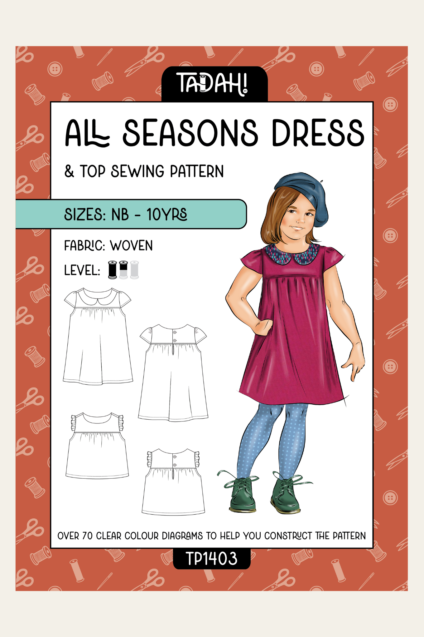 This modest, classic cut dress is perfect for every season - use a light weight cotton for a sweet summer dress, or a lovely cord or denim to make a cosy winter dress which can be layered with tights, a long sleeve top and boots!
