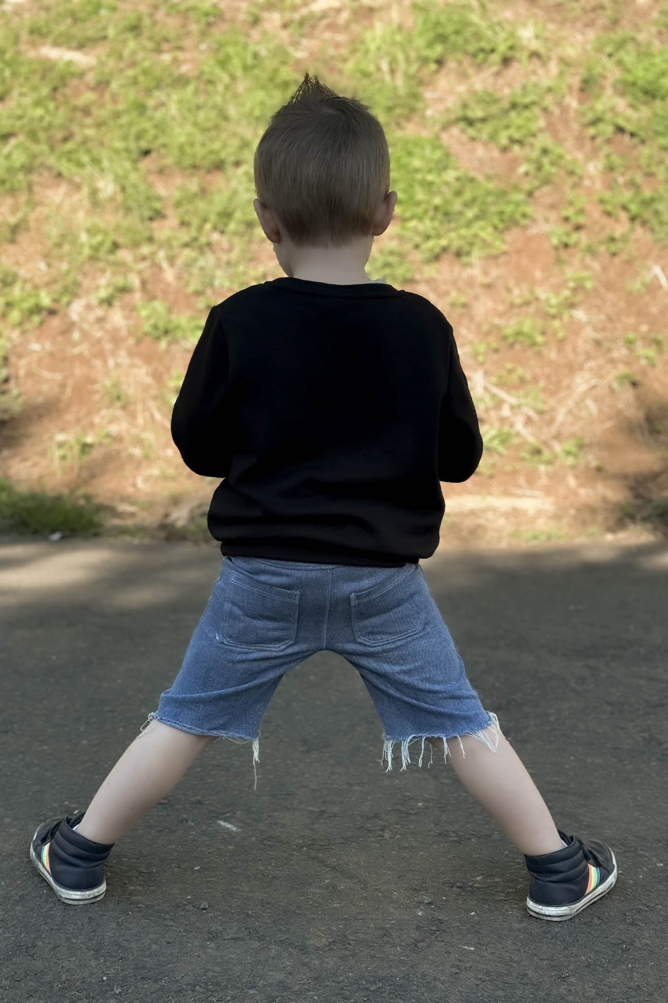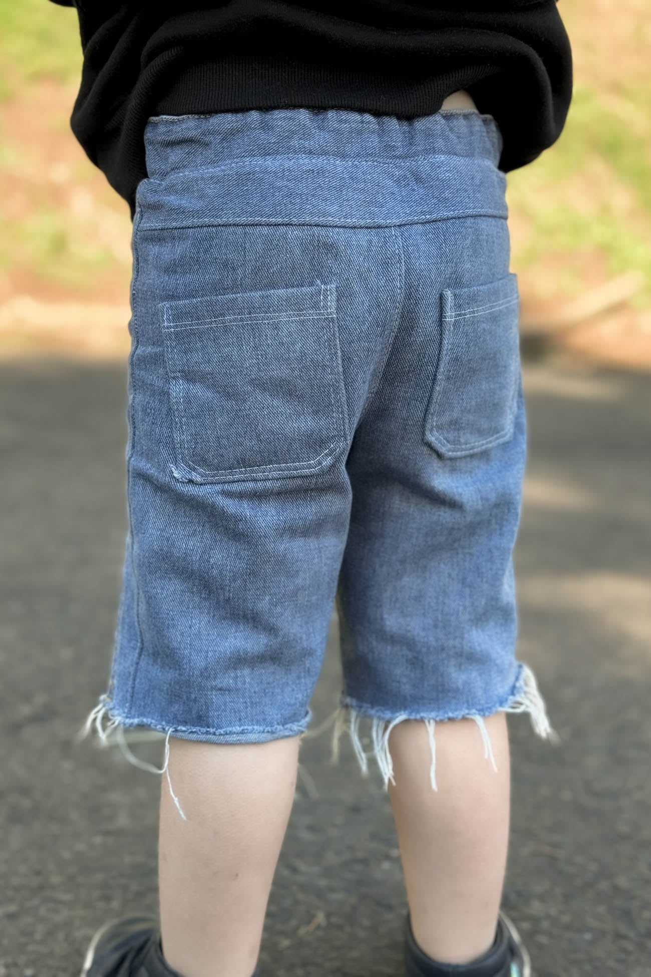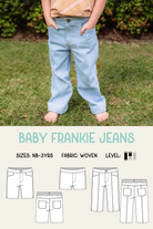 Featuring a panelled front and back for a classic straight style, the Baby Frankie Jeans pattern offers endless opportunities for customization. They can be made in three lengths - full length, long shorts and short shorts. You can also choose to add optional front and back pockets for added flair.