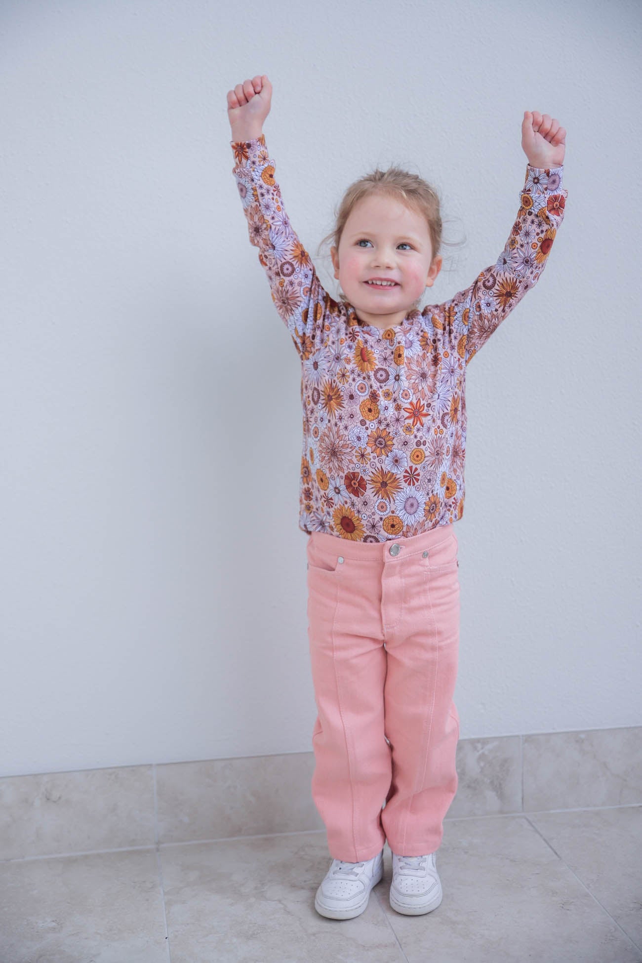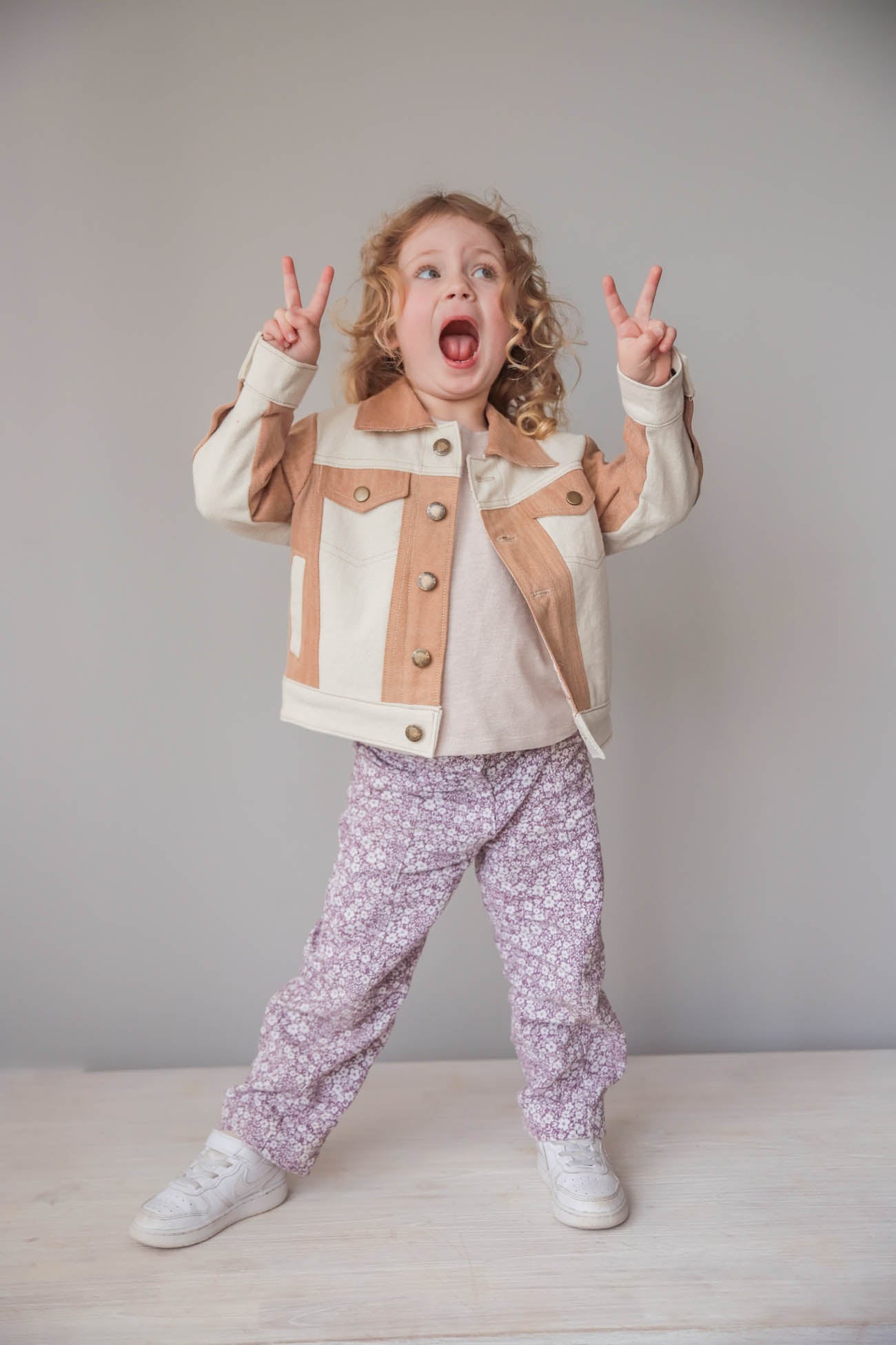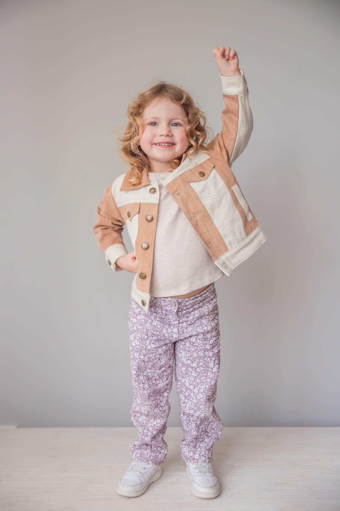 Our pattern includes detailed instructions and tips for sewing with denim, helping you create professionally finished jeans that will stand the test of time. And despite being called “jeans,” this pattern can be used with a wide range of mid-heavy weight fabrics, from corduroy to linen, allowing you to create unique and stylish looks for your little one.