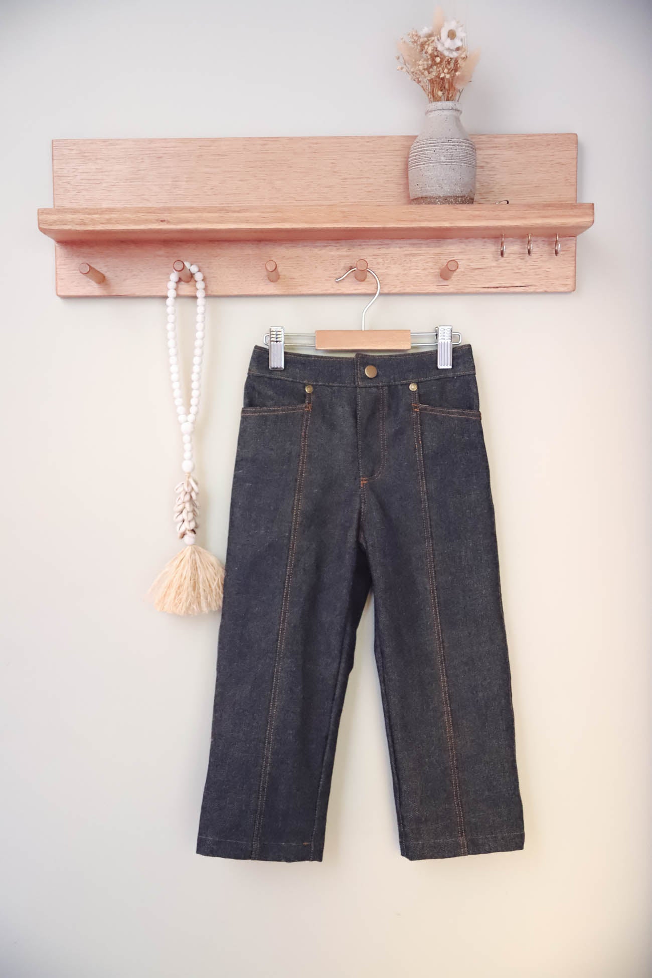 Suited to the adventurous beginner sewists and beyond, these jeans are available in three size ranges - Baby (sizes newborn to 3), Kids (sizes 3-10) and Teen (sizes 10-16).