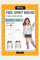 The Free Spirit blouse comes in a multi-size pattern to fit children aged one to 14. It features colour coding pattern pieces for ease of cutting and is best suited to light and medium-weight woven fabrics.