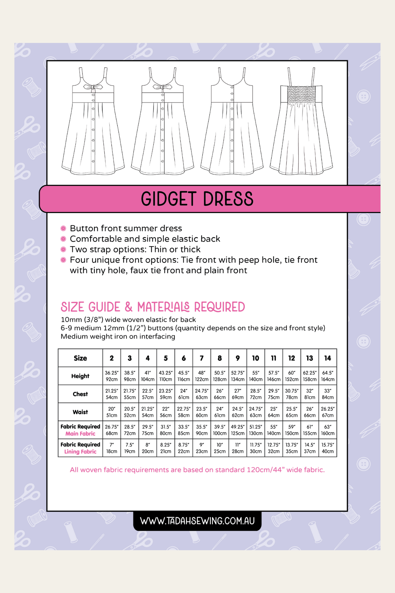 Suited to light-weight woven fabrics, the Gidget Dress is destined to be a firm fav for both tiny trendsetters and style-conscious teens. It’s ideal for adventurous beginner sewers and is available in sizes 2-14.