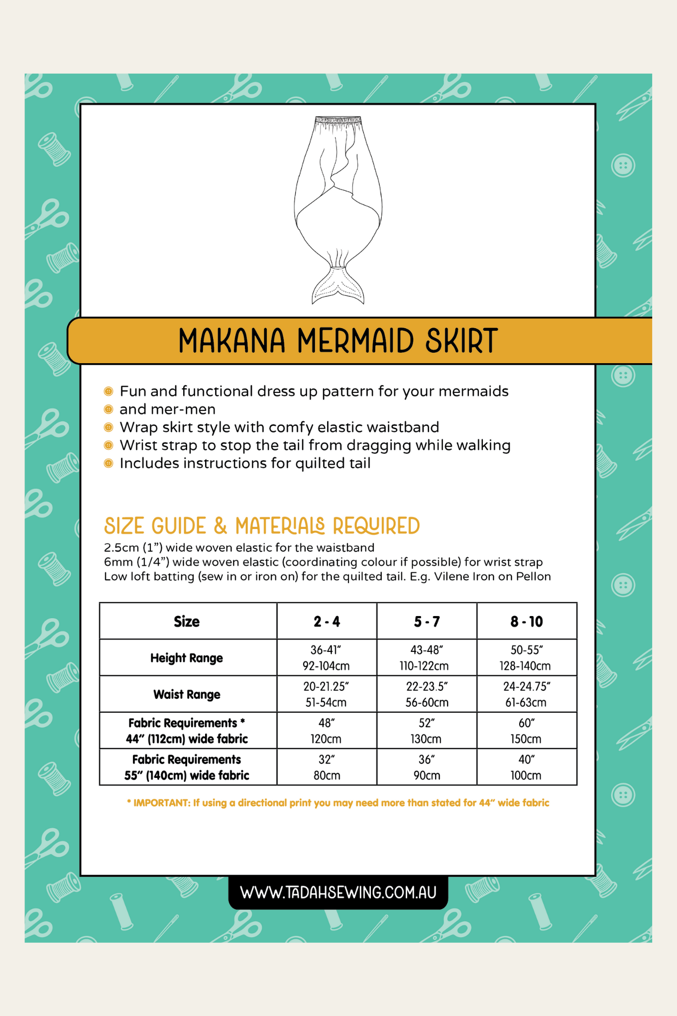 If you have any trouble printing or assembling your pattern please contact us via email and we will do our best to troubleshoot with you to find a solution –help@tadahpatterns.com.au