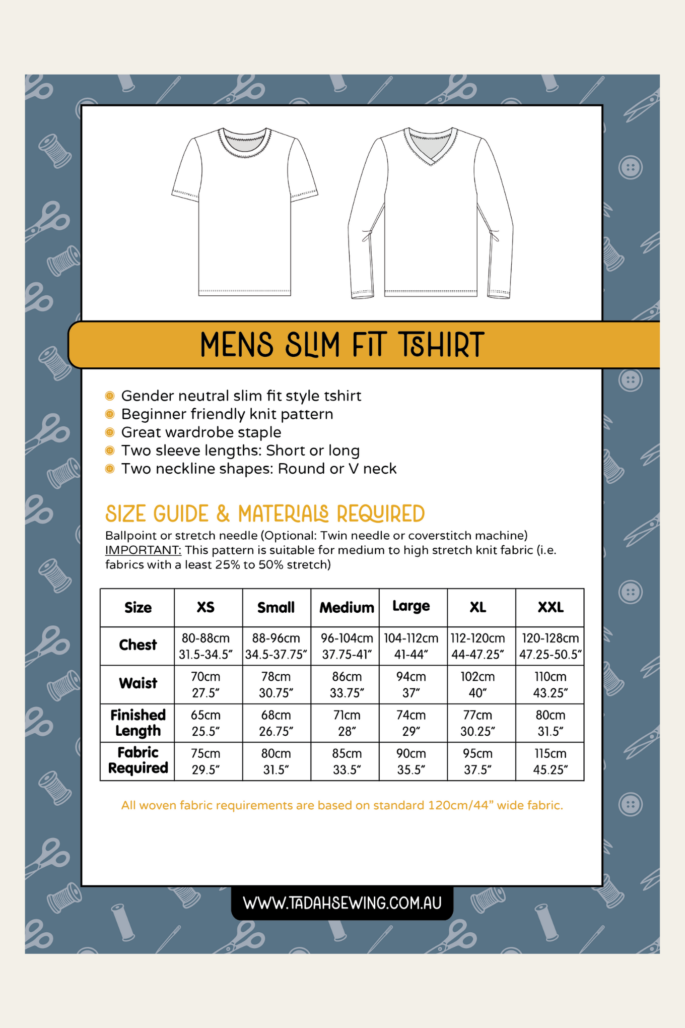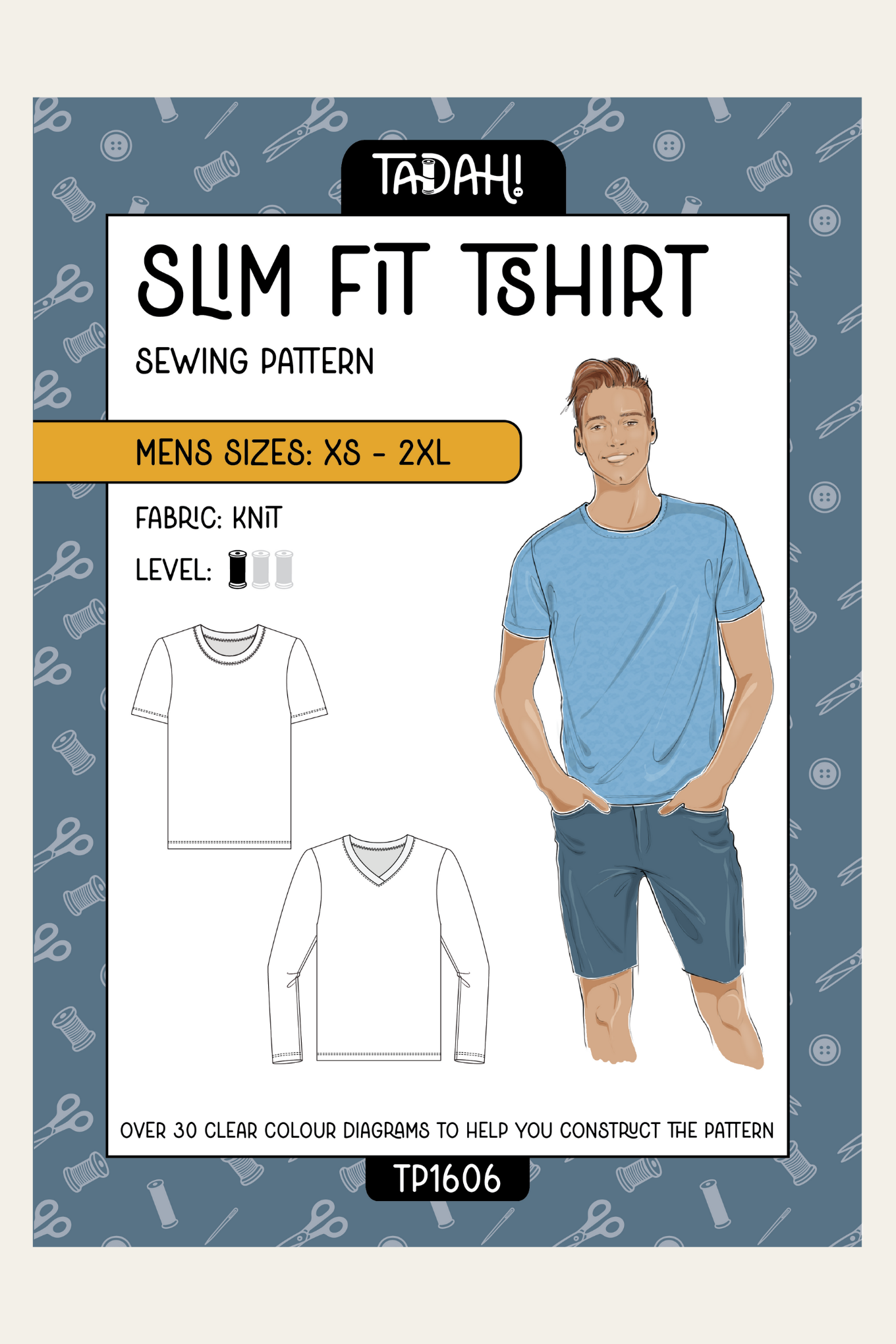 Dress it up, dress it down or don it for bed, the men’s slim fit tee is quick to create and suitable for knit fabrics with at least 25% stretch.