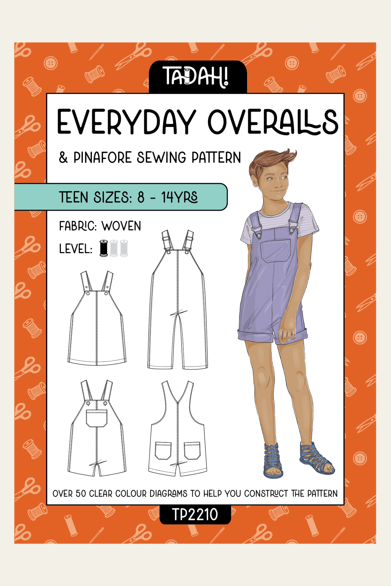 Suited to the beginner sewists and beyond, these overalls are available in three size ranges - Baby (sizes newborn to 3), Kids (sizes 3-8) and Teen (sizes 8-14).