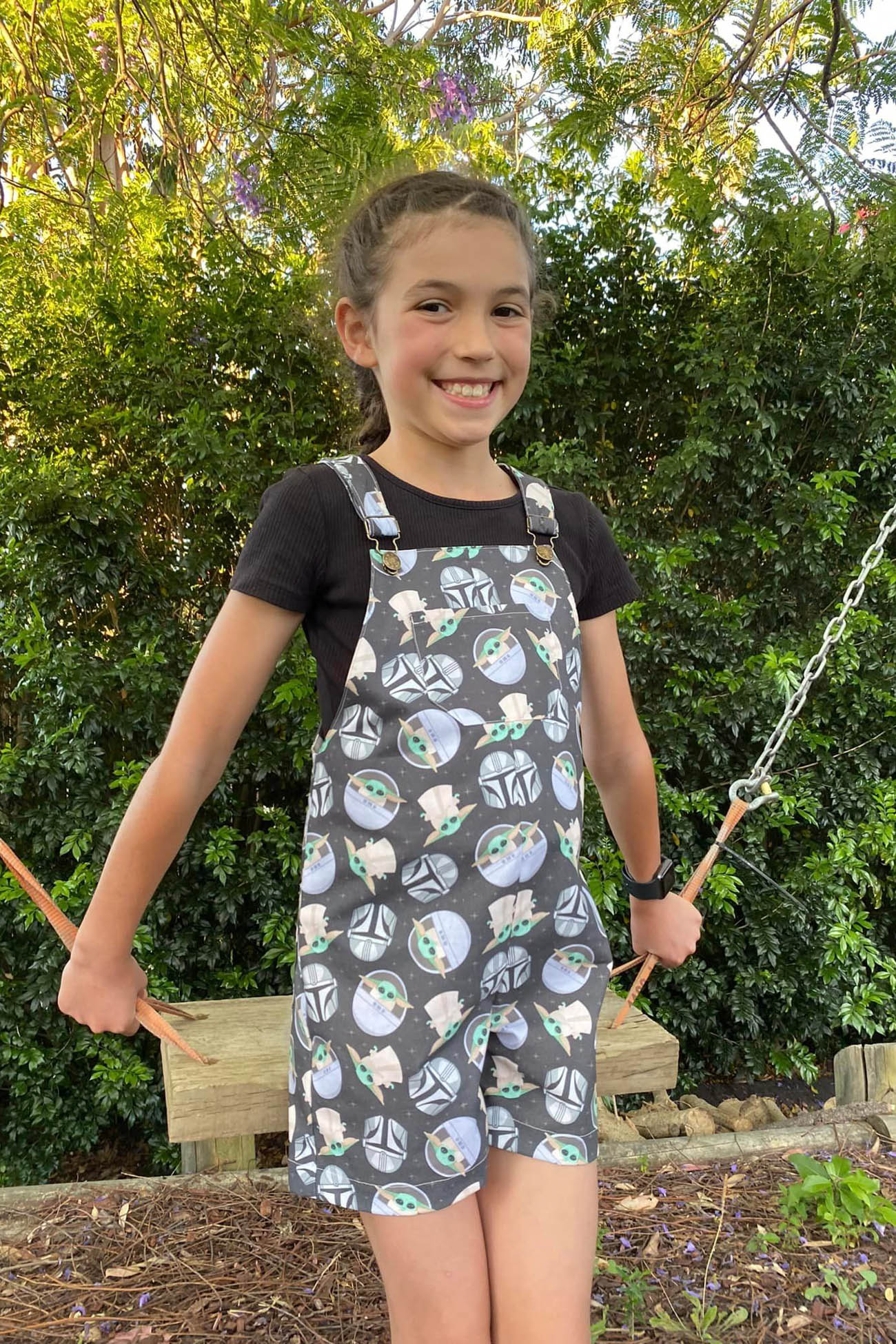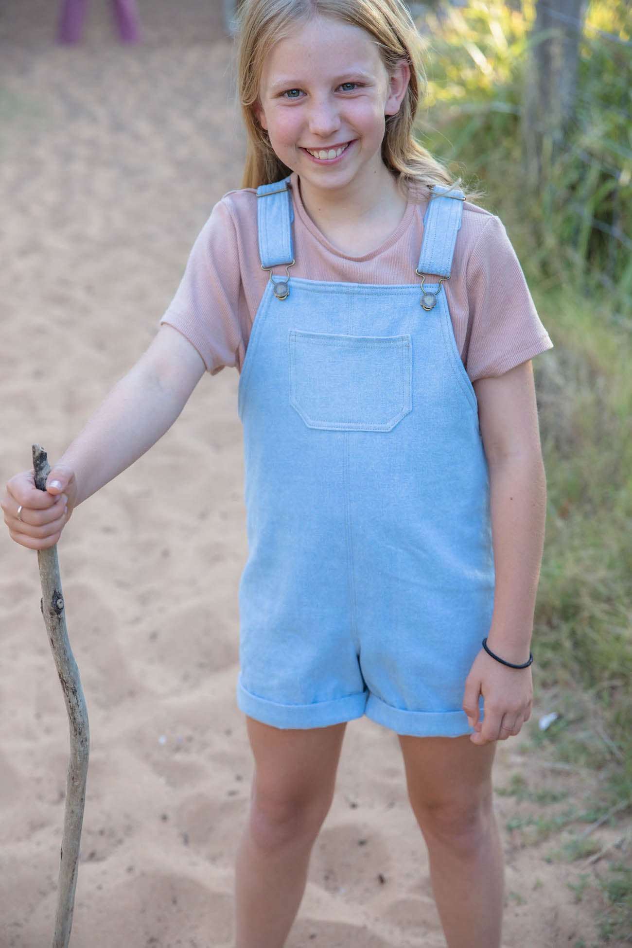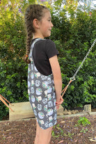 The Everyday Overalls can be made with buttons, snaps or overalls hardware to finish the straps. The pattern offers short legs, long length or a sweet pinafore (dress) style. You can also choose to add pockets to the chest or back of the overalls for all those bits and pieces that kids collect and carry during the day.